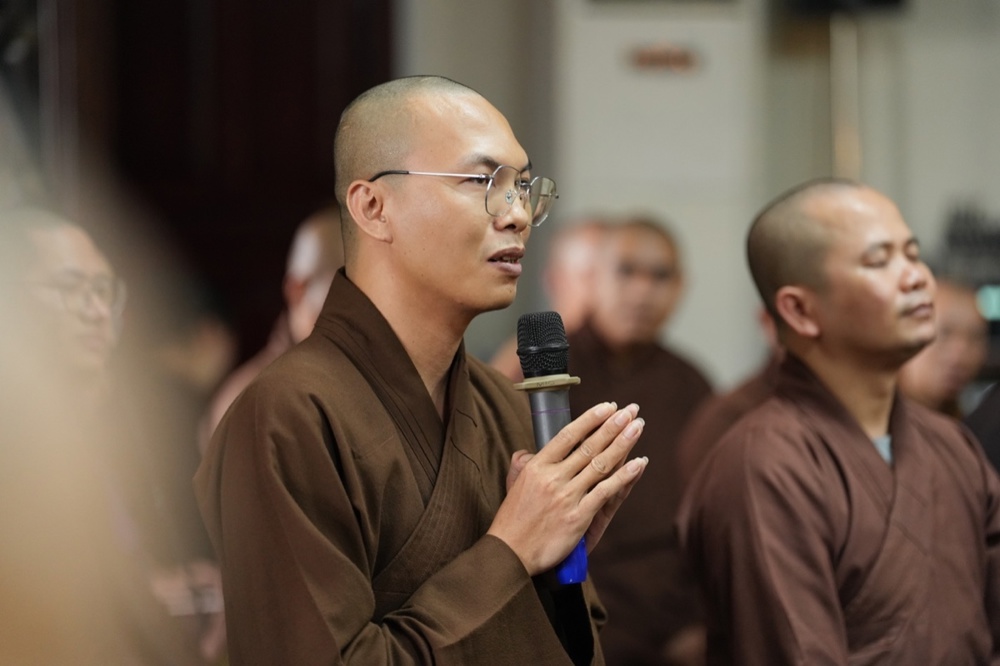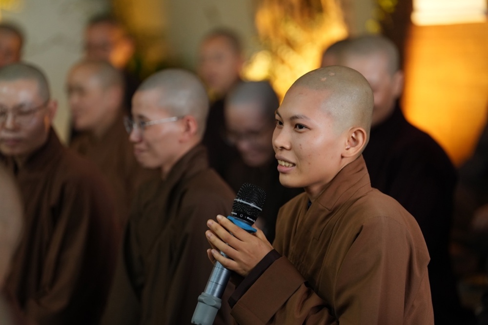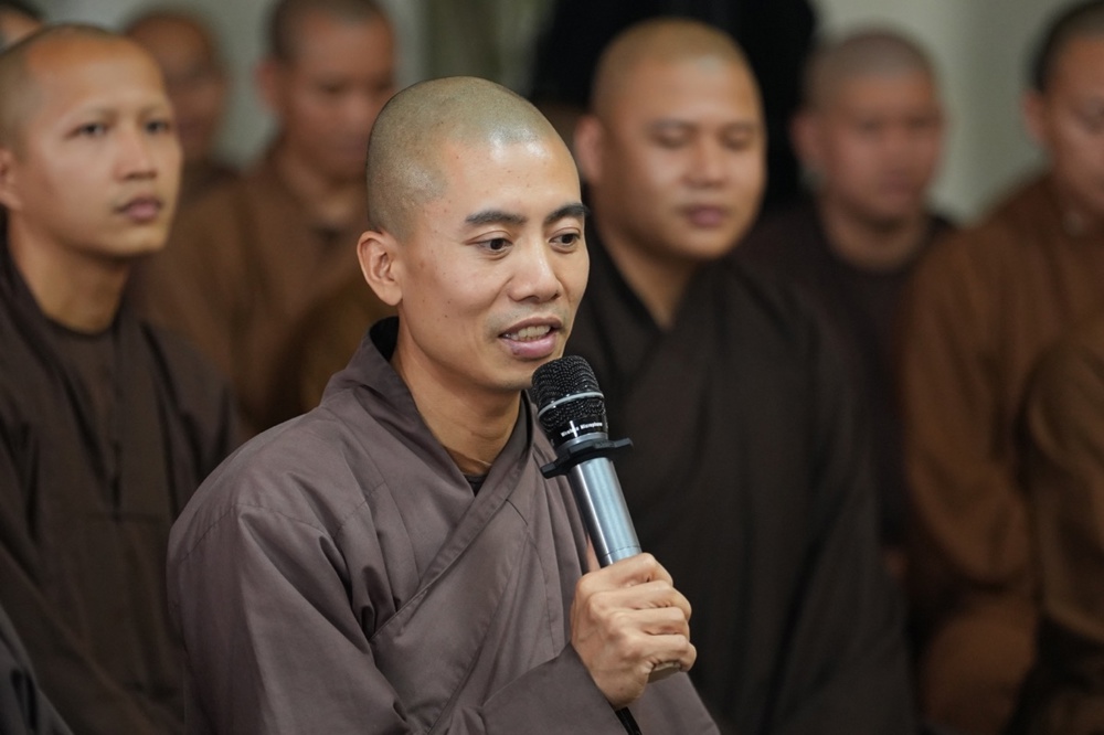 Trong không gian tĩnh lặng và thấm đượm đạo vị, Thượng tọa Thích Minh Nhẫn đã có những lời chia sẻ chân thành, sâu sắc, để lại nhiều xúc cảm trong lòng đại chúng. Thượng tọa hoan hỉ gửi lời chúc mừng đến quý Tăng Ni đã hoàn thành chương trình đào tạo Cao cấp Giảng sư của Ban Hoằng pháp, khép lại một chặng đường tu học để mở ra hành trình phụng sự mới.