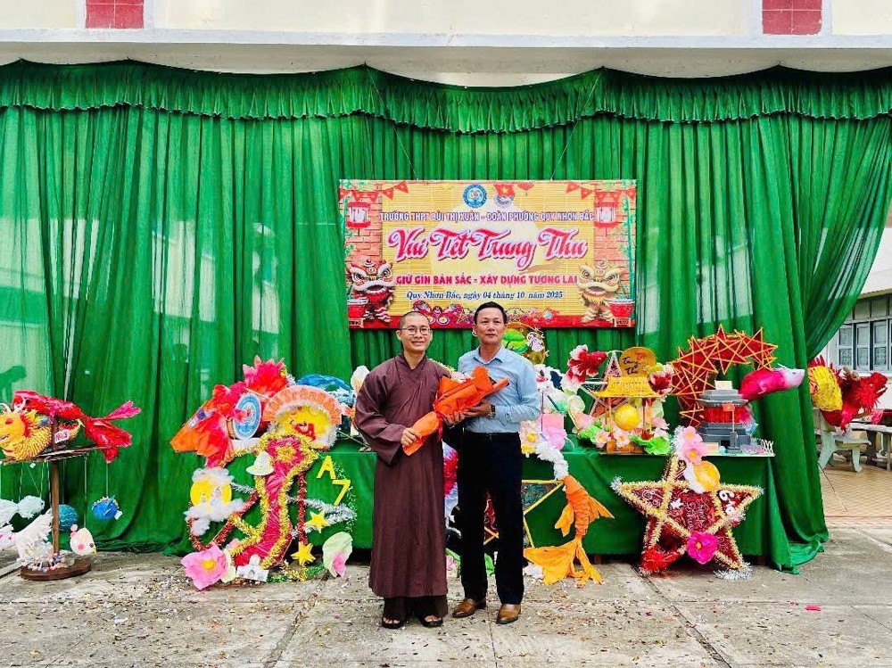 Chương trình vui Tết Trung thu với chủ đề “Giữ gìn bản sắc - xây dựng tương lai” được tổ chức tại Trường với mục đích gìn giữ và phát huy những giá trị văn hóa truyền thống tốt đẹp của dân tộc, đồng thời tạo sân chơi lành mạnh, bổ ích cho các em học sinh; gúp các em có thêm niềm vui, động lực trong học tập và rèn luyện. Trong chương trình, Đại đức Thích Đồng Quang, Trụ trì chùa Nam Thạnh đã trao 20 suất học bổng cho các em học sinh vượt khó có thành tích cao, với mong muốn các em tiếp tục vững bước tới trường.