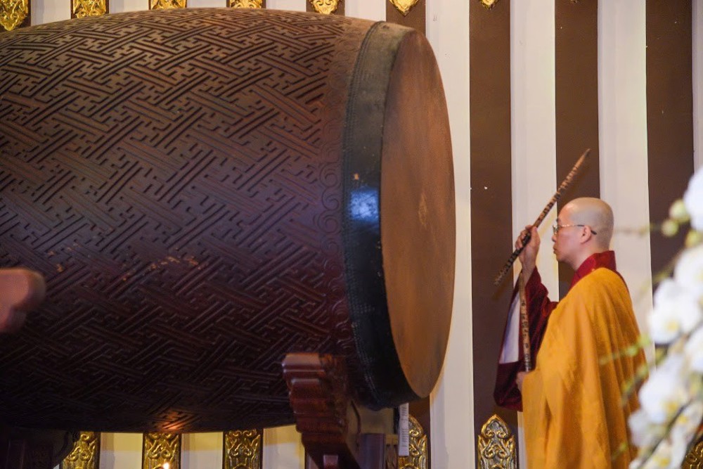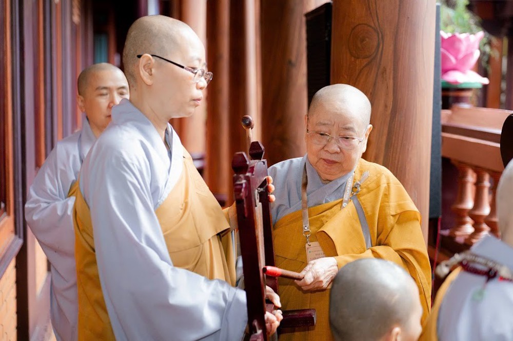 Sau đó, Chư Tôn đức Tăng Ni thực hiện nghi thức khai chuông bảng.