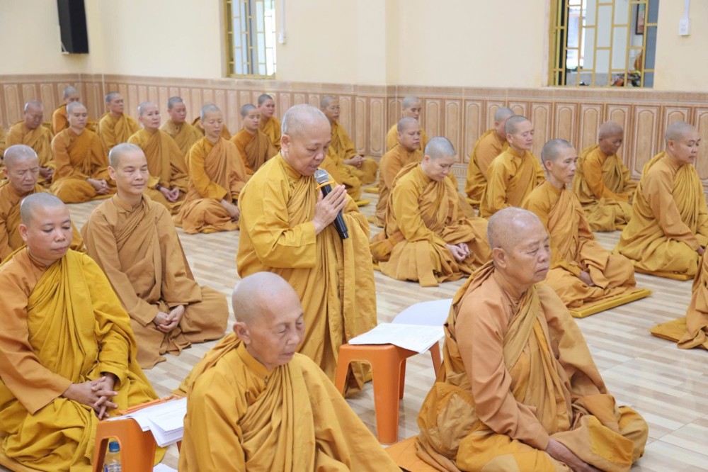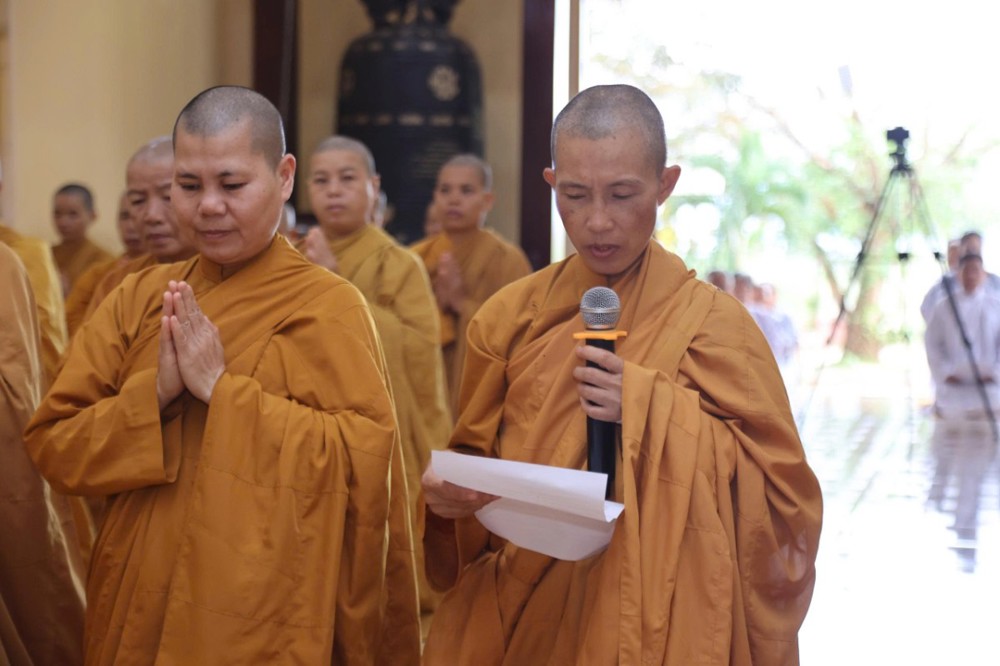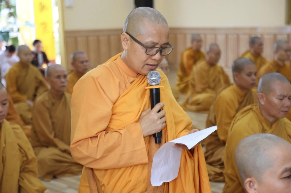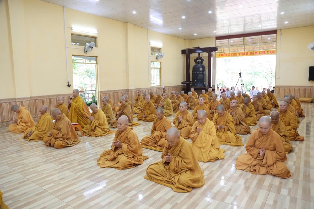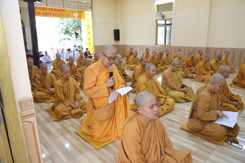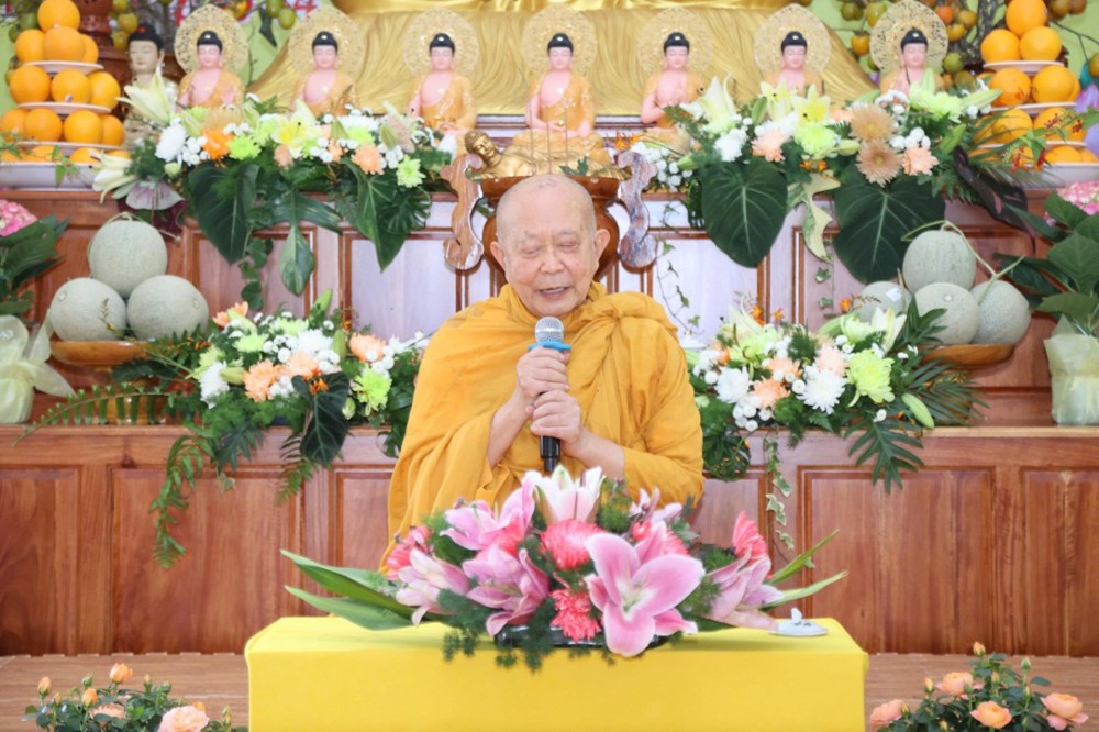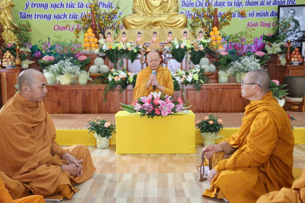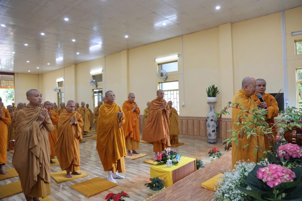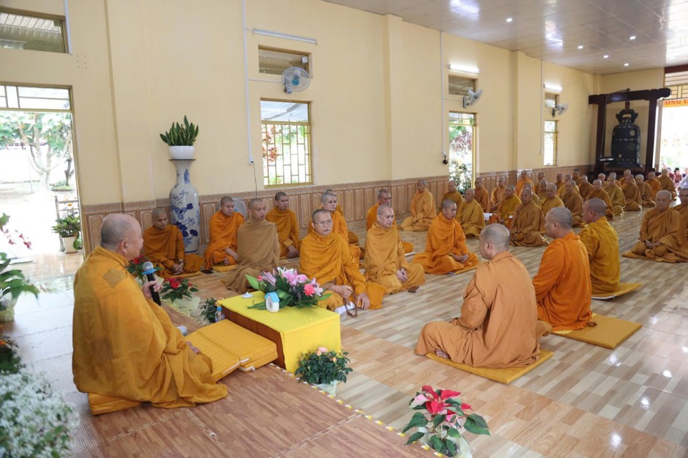 "Được sống và tu học trong hội chúng là một phước báu rất lớn, vì chúng ta tuy khác thân nhưng đồng một tâm cầu đạo tu học. Đây là cơ hội để mỗi người gìn giữ, soi chiếu chính mình, nên biết phải cẩn trọng trong lời nói và ý nghĩ để học và tu, cùng nhau phụng sự lợi ích cho đạo và đời", Hòa thượng chỉ rõ.