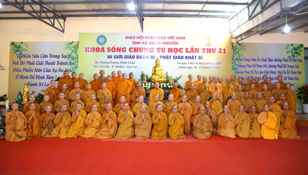 Khóa tu “Sống chung tu học” lần thứ 21 này, Ni giới Giáo đoàn III PGKS đã chọn Tịnh xá Ngọc Nguyên (Gia Lai) làm nơi đăng cai tổ chức. Khóa tu diễn ra trong 7 ngày, từ ngày 09 – 16/10/2025 (18 – 25/8/Ất Tỵ), với sự tham dự của hơn 60 hành giả Ni trực thuộc Giáo đoàn III PGKS.