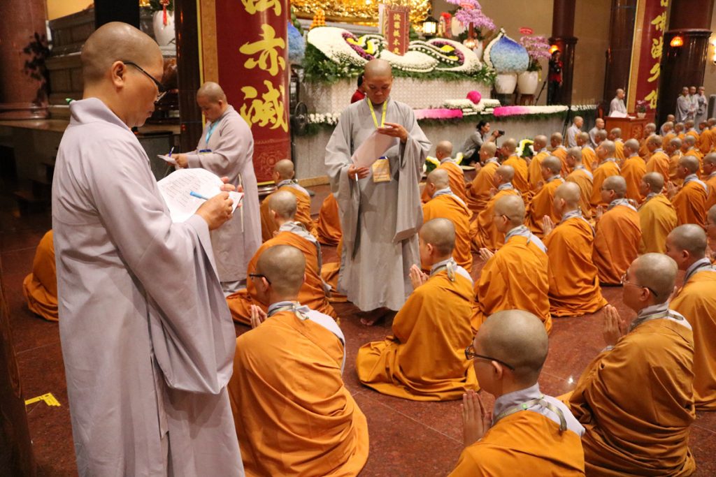 Sau nghi thức trang nghiêm cung đón di ảnh cố HT.Huệ Hưng, quý Ni trưởng, Ni sư đã niệm hương, bạch phật và tụng kệ, các giới tử đã được cung đón chư Tôn đức BTS GHPGVN TP.HCM đến chứng minh và sách tấn cho hàng Ni giới.