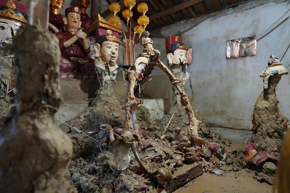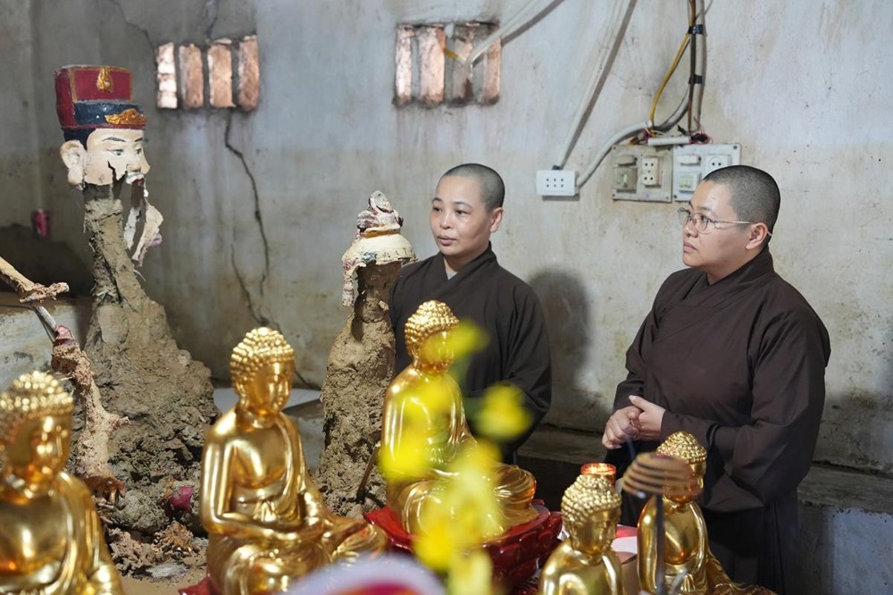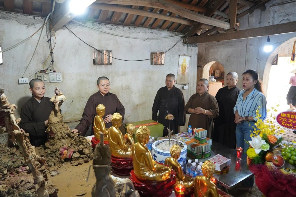 Chùa An Lạc – ngôi già lam thanh tịnh giữa miền quê yên bình, nay vẫn còn in hằn dấu tích đau thương sau cơn thiên tai dữ dội. Nước lũ từng tràn sâu vào chính điện, làm hư hỏng nhiều tài sản, kinh sách, vật dụng sinh hoạt đều bị ngấm nước, hư nát. Đặc biệt, những pho tượng Phật làm bằng đất thổ - một nét đẹp văn hóa Phật giáo cổ truyền phía Bắc, sau trận lụt đã chỉ còn là bùn đất. Cảnh chùa sau bão tiêu điều, cây cối ngã đổ, tường vách còn loang lổ vết nước dâng cao, khiến ai đến cũng không khỏi xúc động và xót xa.