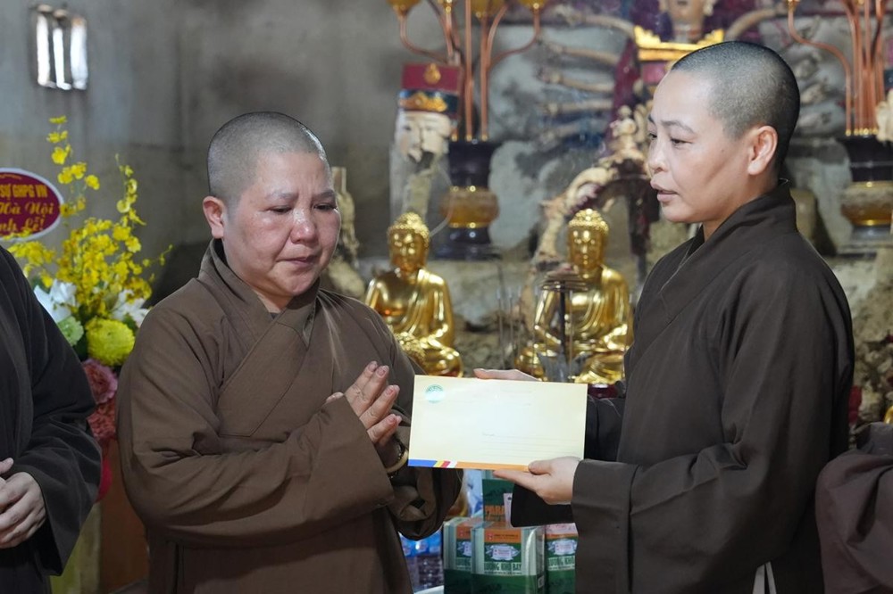 Đón nhận phần quà hỗ trợ, Sư cô Thích Nữ Minh Thông xúc động bày tỏ lòng tri ân sâu sắc đến Ban Thông tin Truyền thông GHPGVN TP. Hà Nội cùng phái đoàn. Sư cô chia sẻ, sự quan tâm kịp thời của chư Tăng Ni và Phật tử thập phương không chỉ giúp chùa An Lạc khắc phục thiệt hại vật chất, mà còn là nguồn động viên tinh thần to lớn, tiếp thêm năng lượng và niềm tin để nhà chùa sớm ổn định đạo tràng, tiếp tục sứ mệnh hoằng pháp lợi sinh.