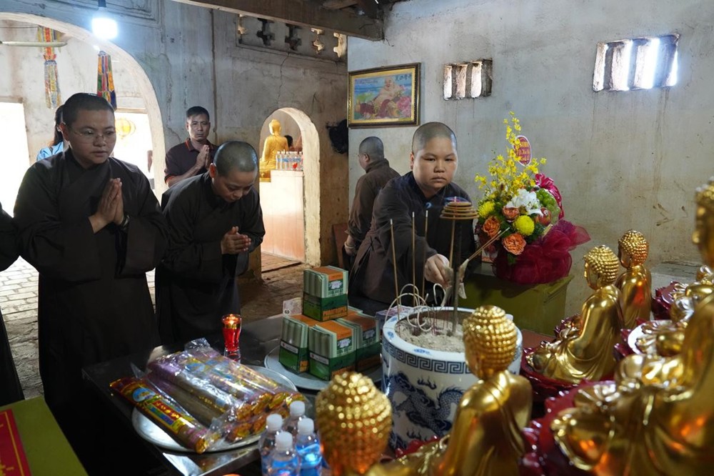 Phái đoàn đã dâng hương tại Tam Bảo, thăm hỏi, chia sẻ và động viên chư Ni cùng Phật tử tại bản tự. Sư cô Thích Nữ Minh Thông - trụ trì chùa An Lạc, đã xúc động đón tiếp trong niềm tri ân và hoan hỷ.