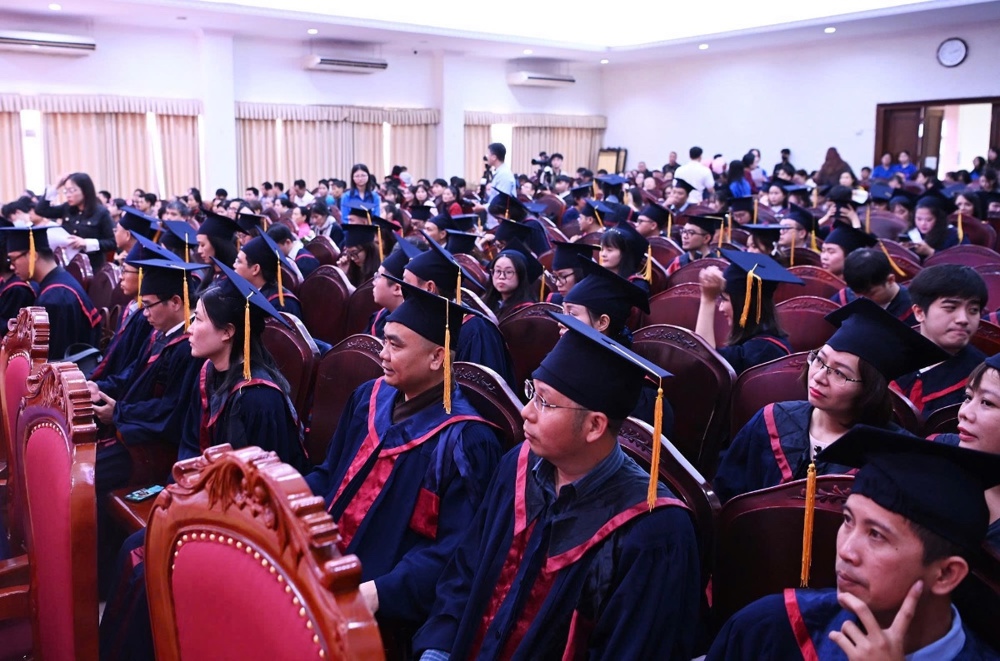 Buổi lễ có sự hiện diện của Hội đồng trường, Ban Giám hiệu, đội ngũ giáo sư, giảng viên hướng dẫn cùng đông đảo người thân, gia đình các tân khoa.