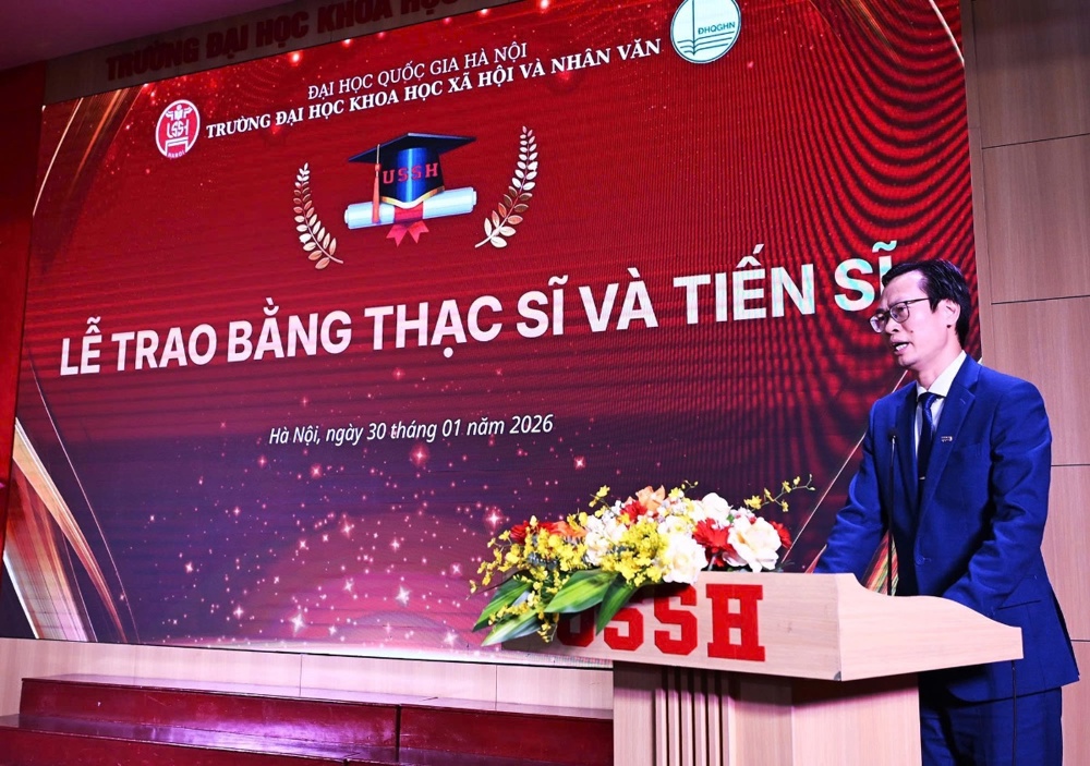 PSO: Chiều ngày 30/01/2026, trong không khí trang nghiêm tại trường Đại học Khoa học Xã hội và Nhân văn (ĐHQG Hà Nội), Lễ trao bằng Tiến sĩ và Thạc sĩ năm 2026 đã được tổ chức long trọng. Đây là dịp vinh danh 24 nghiên cứu sinh và 126 học viên cao học đã hoàn thành xuất sắc chương trình đào tạo và bảo vệ thành công luận án, luận văn.