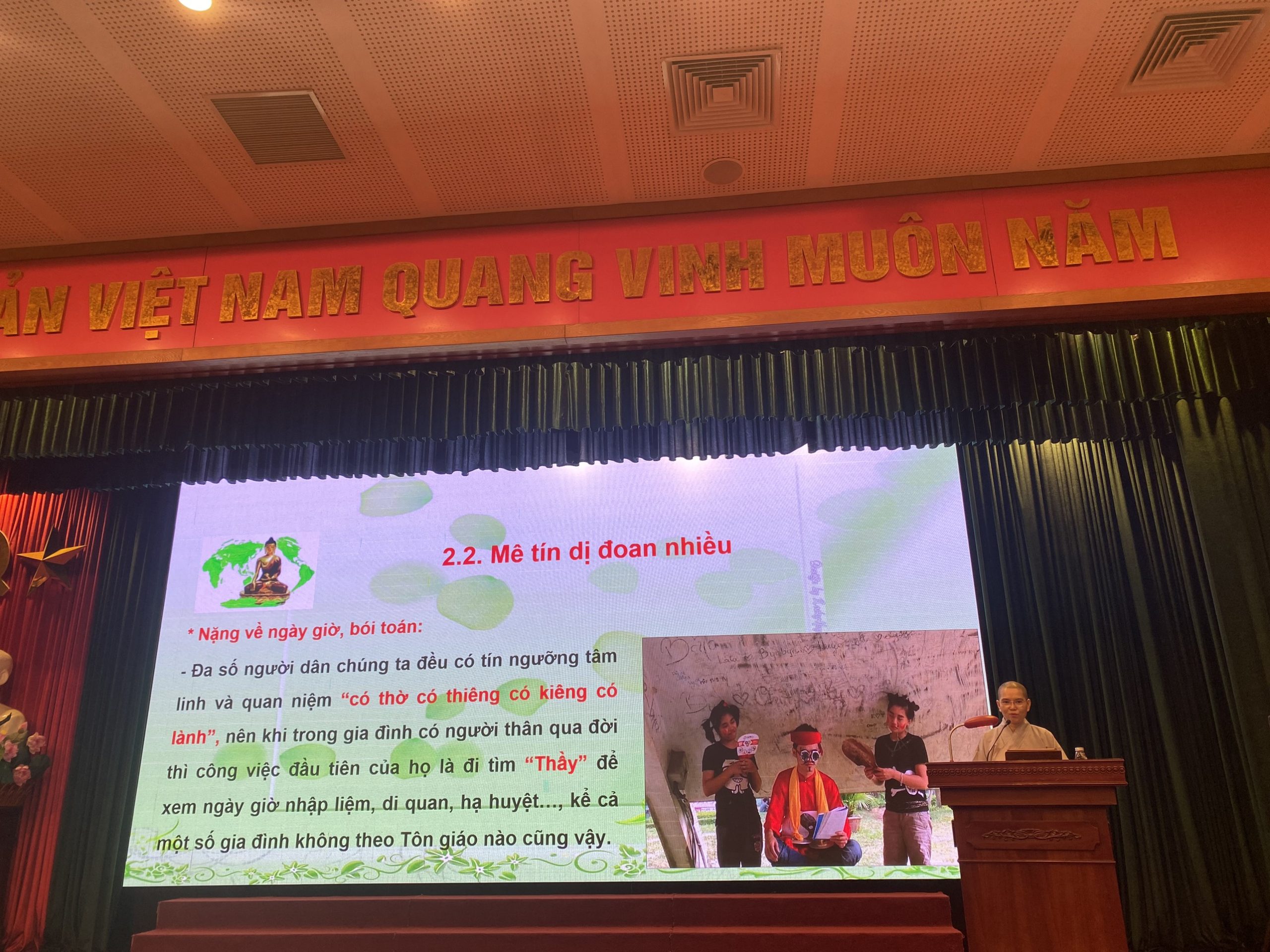 Tại Hội nghị, Ni sư cho biết Thủ đô Hà Nội đang ngày càng phát triển mạnh mẽ. Các mặt văn minh đô thị ngày càng khởi sắc. Nếp sống văn minh, tiến bộ trong việc cưới, việc tang, lễ hội được xây dựng và thực hiện thành nề nếp, sẽ góp phần tỏa sáng Văn minh - Văn hiến cho Thăng Long - Hà Nội. Đặc biệt là việc “Tang” trước nhất là hình thức chôn cất, (địa táng) sẽ quyết định các tình tiết nghi thức khác. Cần bỏ cách chôn cất để 03 - 05 năm sau bốc mộ, rất mất vệ sinh. Vận động người dân thực hiện rộng rãi nghi thức hỏa táng, điện táng; sau đó chôn cất mộ xây không lớn. Đất đai ngày càng hạn hẹp, nên phải chuyển đổi nghi thức từ “địa táng” sang “hỏa táng hoặc điện táng”.