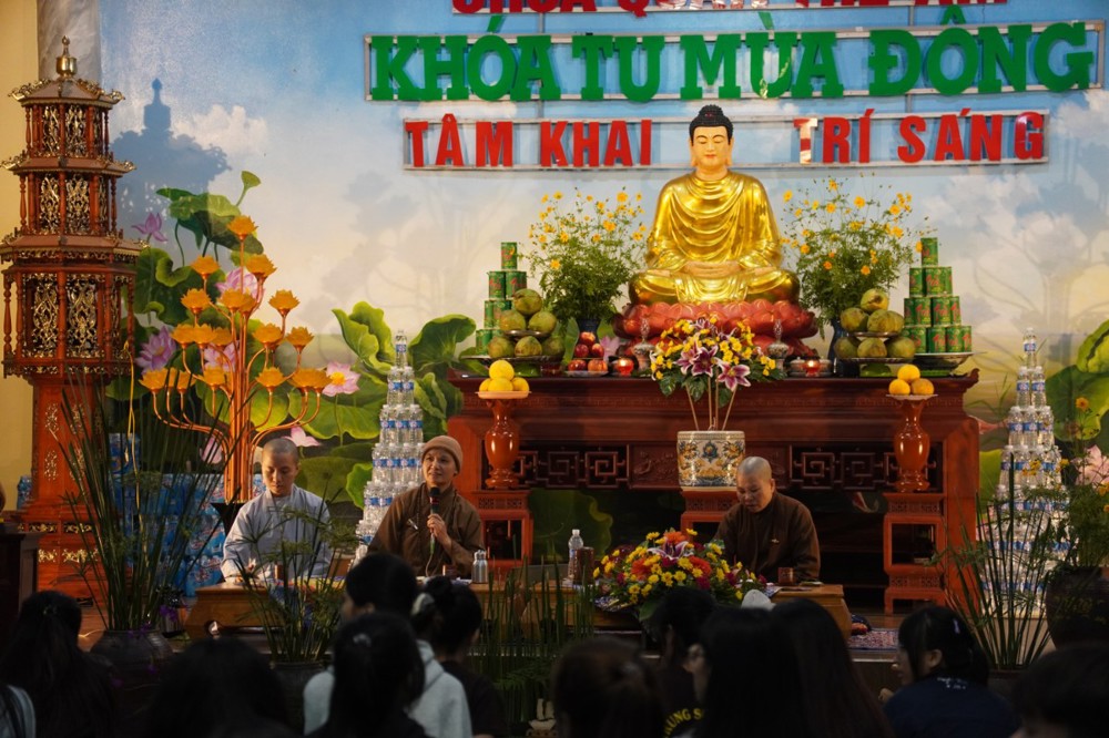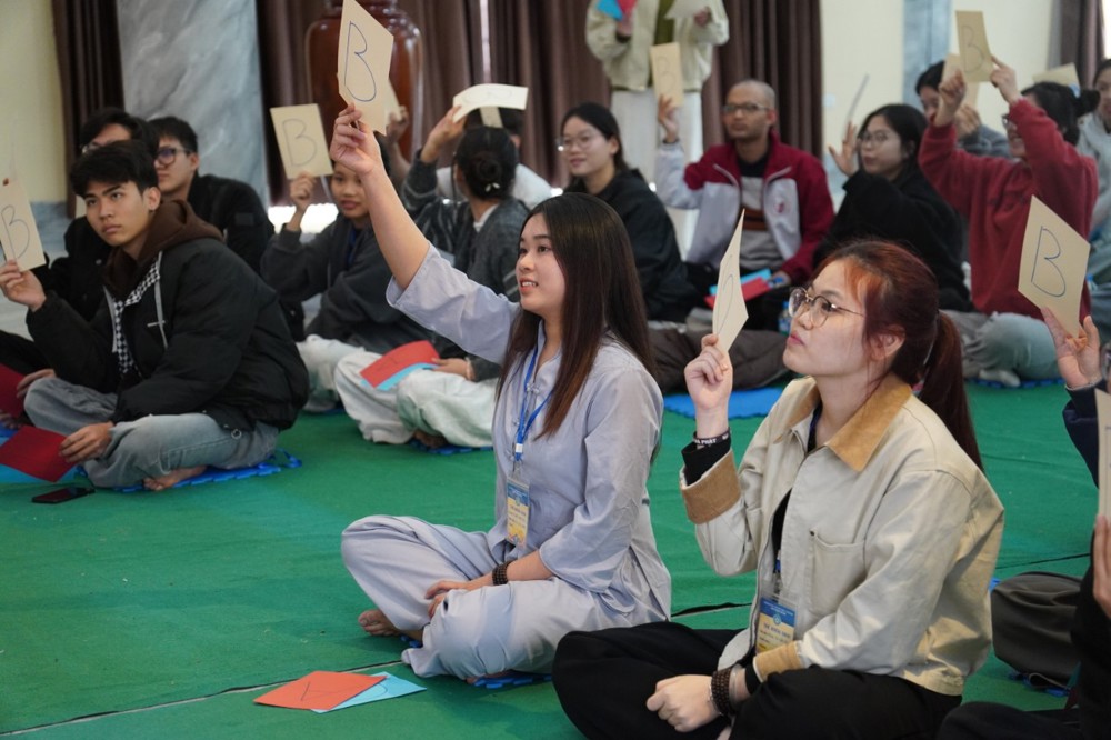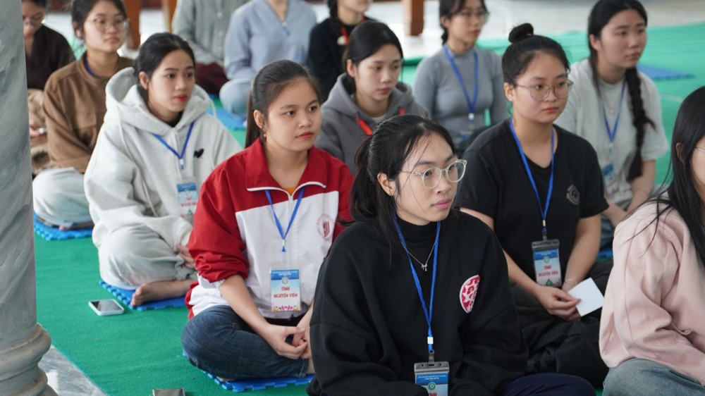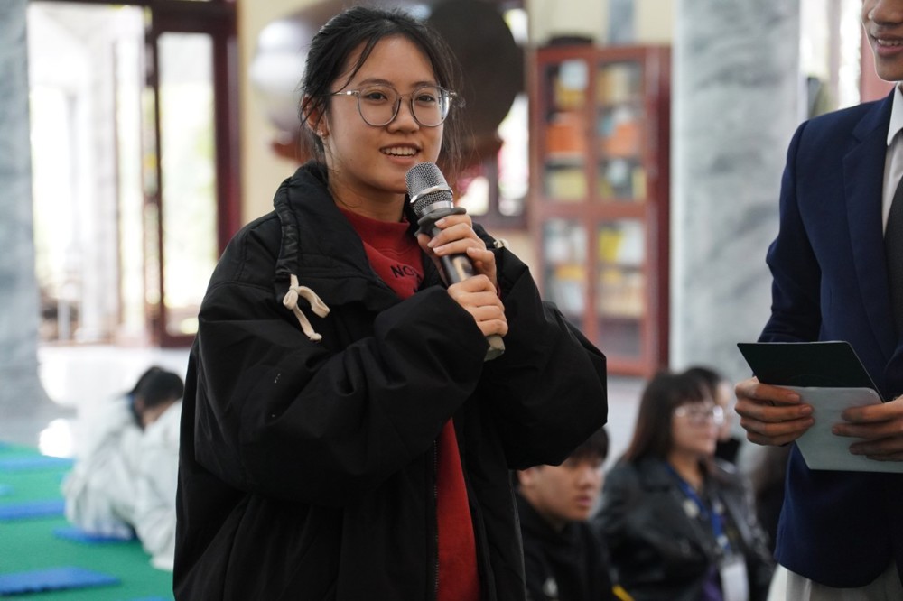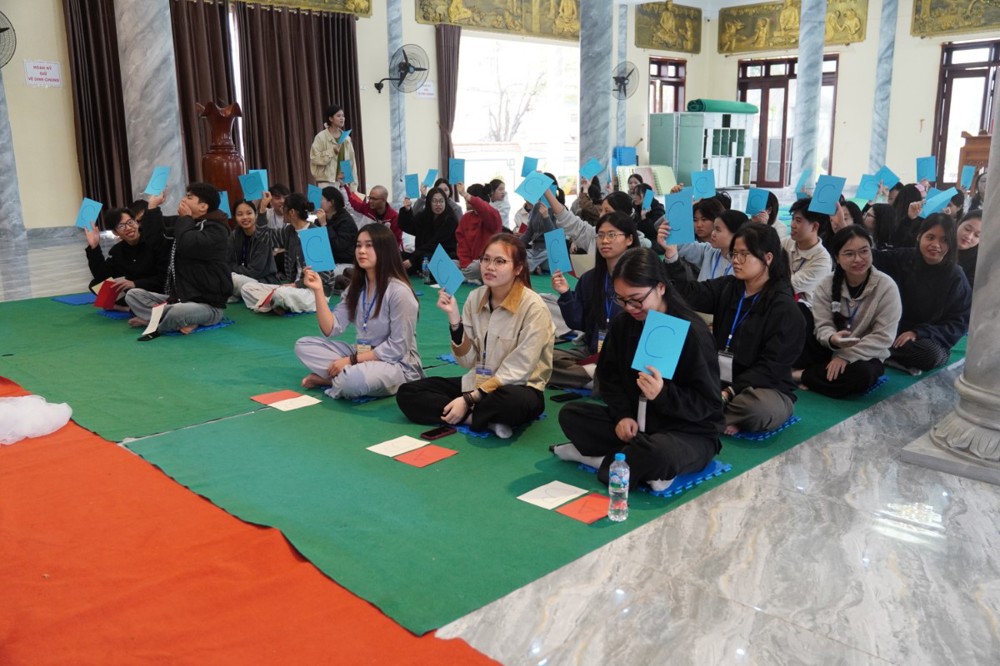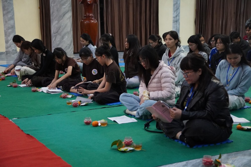 Một điểm nhấn đáng chú ý của khóa tu là buổi tọa đàm với chủ đề “Du lịch tâm linh trong mắt thế hệ trẻ”, với sự tham gia của anh Lãnh Tuyết – diễn giả, hướng dẫn viên giàu kinh nghiệm trong lĩnh vực du lịch văn hóa – tâm linh, và TS. Phạm Thị Hải Yến – giảng viên Trường Đại học Văn hóa Hà Nội.