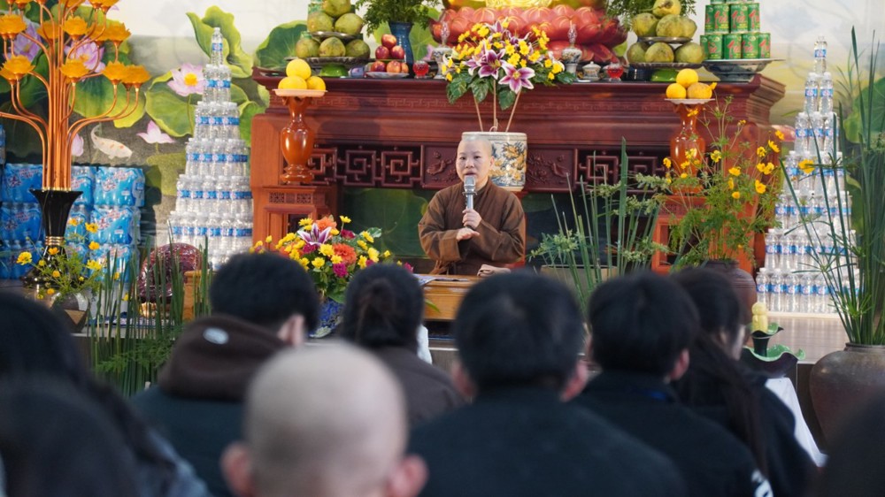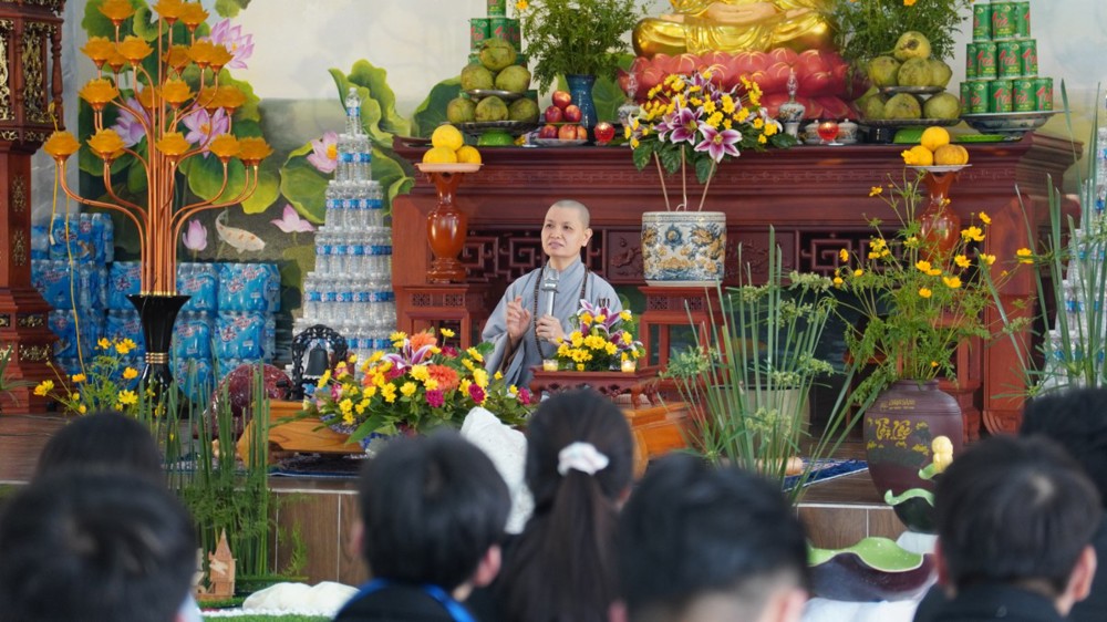 Xuyên suốt chương trình, các thời khóa được sắp xếp hài hòa giữa tu tập và trải nghiệm thực tế. Đặc biệt, Sư cô trụ trì Thích Nữ Diệu Quang đã có buổi chia sẻ gần gũi với chủ đề “Nhìn sâu Nhân – Quả”, giúp các bạn trẻ nhìn lại chính mình, nhận diện rằng mỗi suy nghĩ, lời nói và hành động hằng ngày đều có ảnh hưởng trực tiếp đến đời sống nội tâm cũng như tương lai của bản thân. Qua đó, các bạn học cách sống chậm hơn, có trách nhiệm hơn và sâu sắc hơn trong đời sống thường nhật.