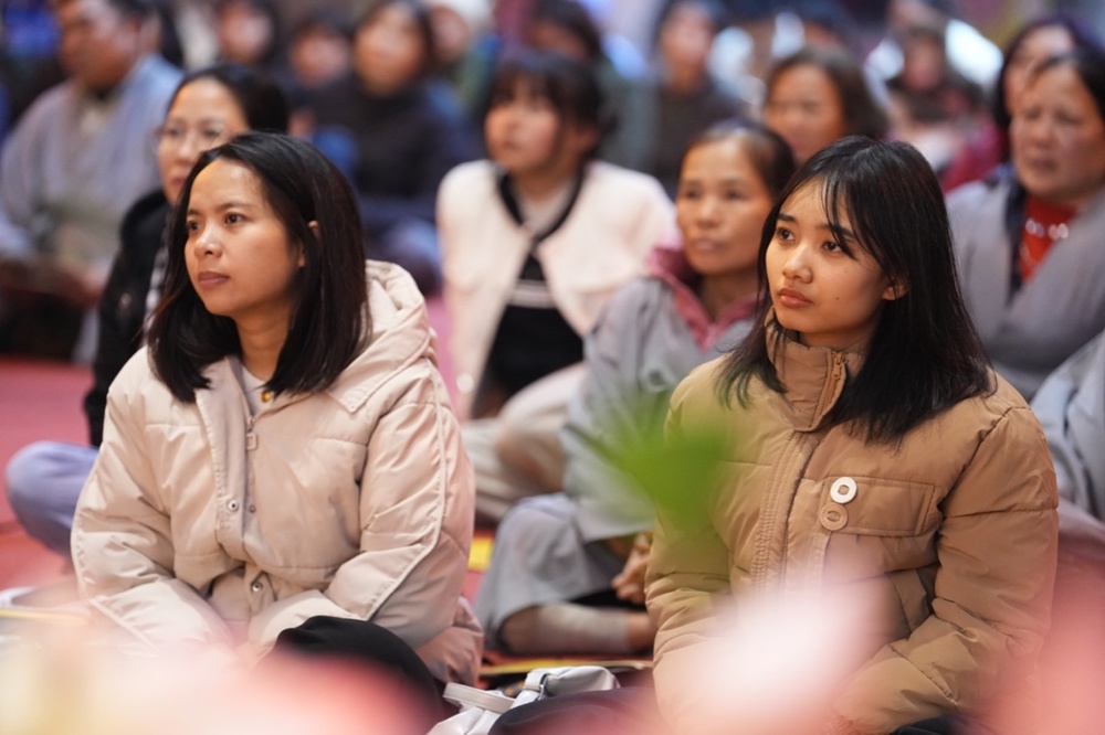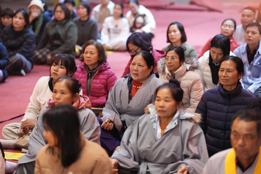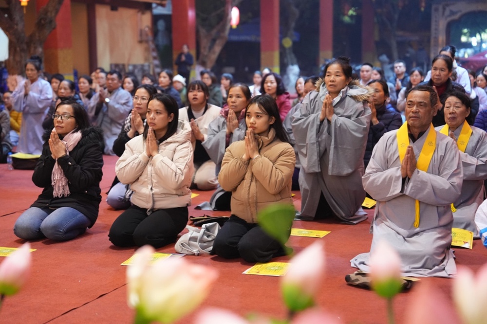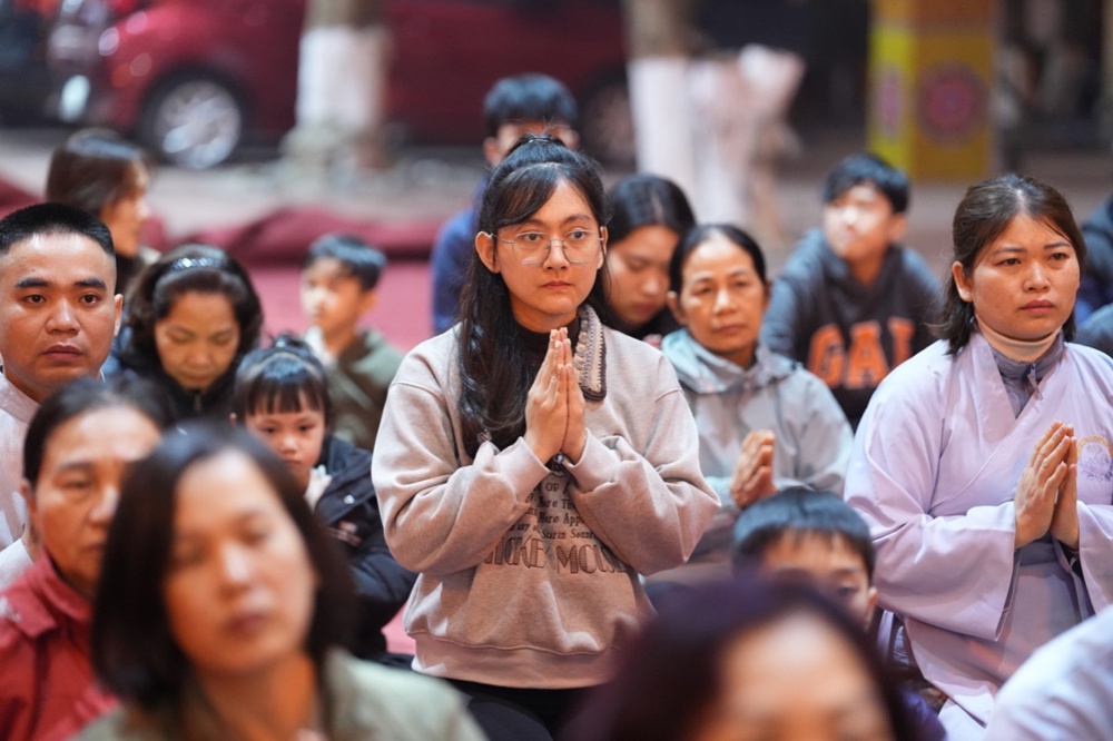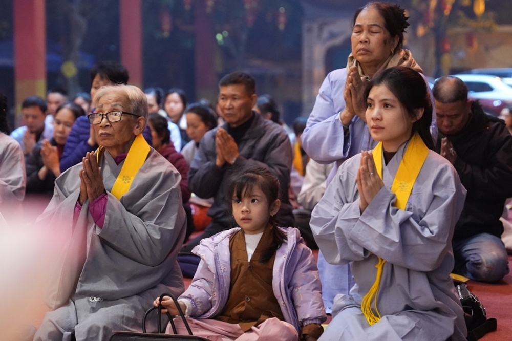 Mặc dù thời tiết Hà Nội vẫn còn giá lạnh, song buổi lễ truyền thụ quy y vẫn quy tụ đông đảo Phật tử thuộc nhiều lứa tuổi khác nhau, từ các bậc cao niên, trung niên cho đến thanh thiếu niên và đặc biệt là sự hiện diện của các em nhỏ – những mầm non tương lai của Phật pháp. Hơn 300 thiện nam tín nữ hiện diện tại lễ đường đều khởi tâm hoan hỷ, chí thành phát nguyện thọ trì Tam quy, giữ gìn Ngũ giới, lấy giáo pháp làm kim chỉ nam cho đời sống hiện tại và mai sau.