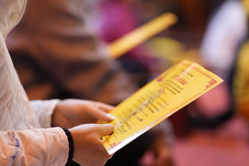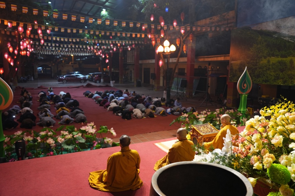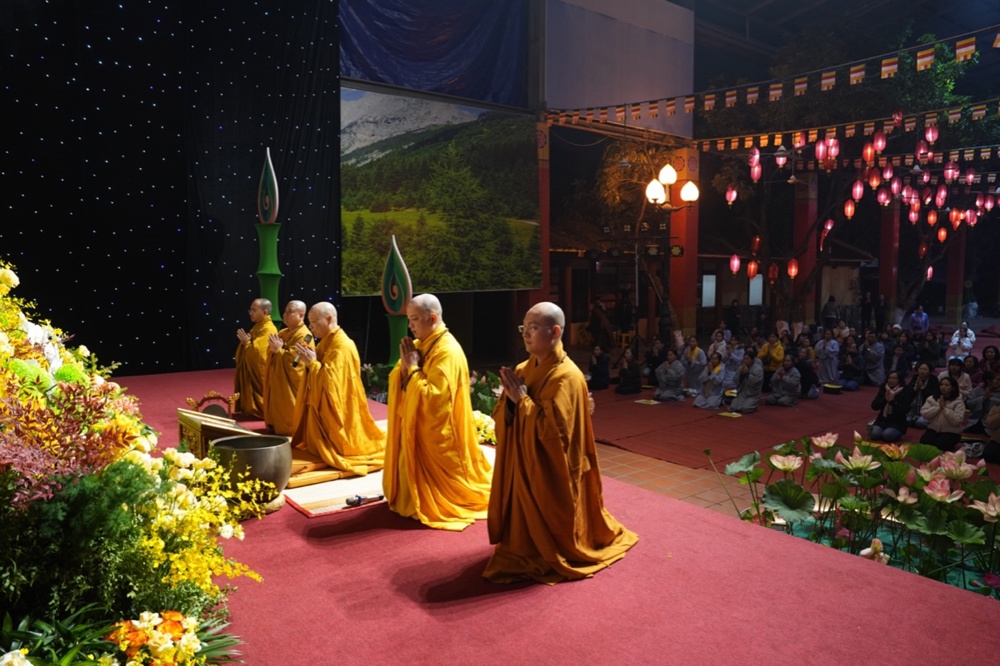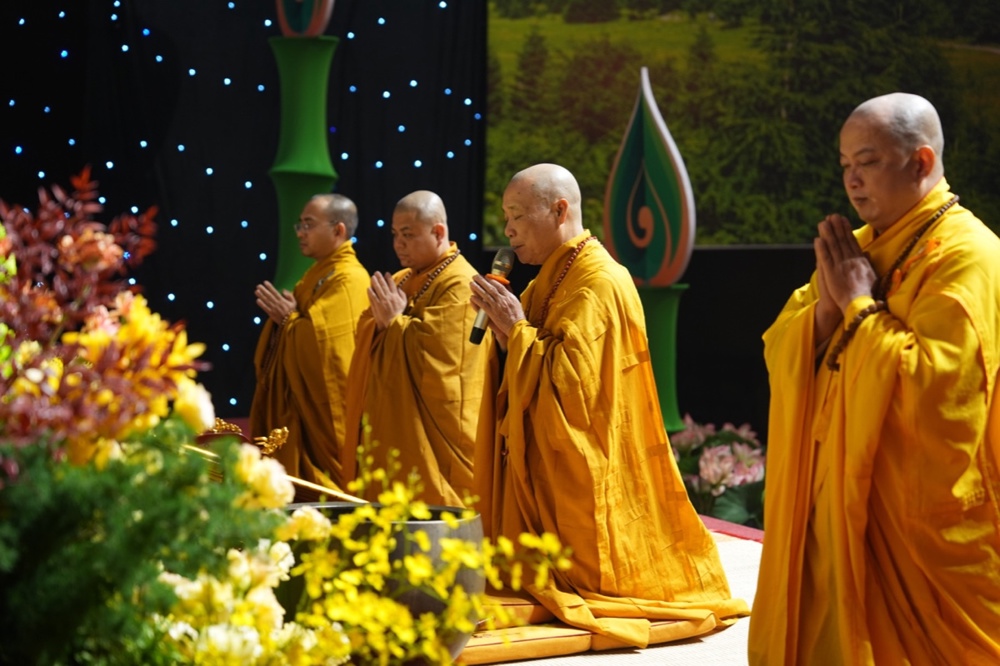 Toàn thể hội chúng nhất tâm hướng về Tam Bảo, chí thành phát nguyện thọ trì Tam quy. Quy y giúp người Phật tử xác lập niềm tin kiên cố nơi Phật – Pháp – Tăng, để từ đó không lạc lối giữa cuộc đời nhiều chông gai, từng bước chuyển hóa khổ đau và nuôi dưỡng đời sống tâm linh an lành.