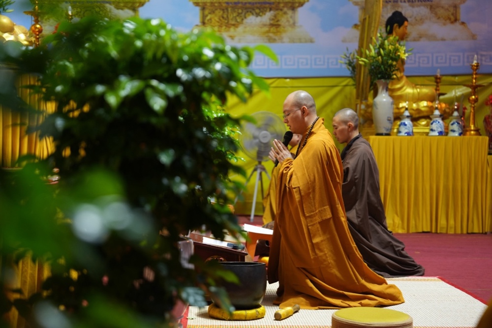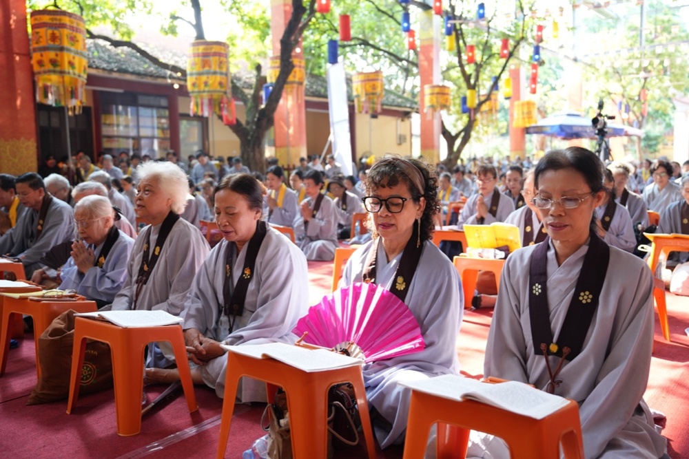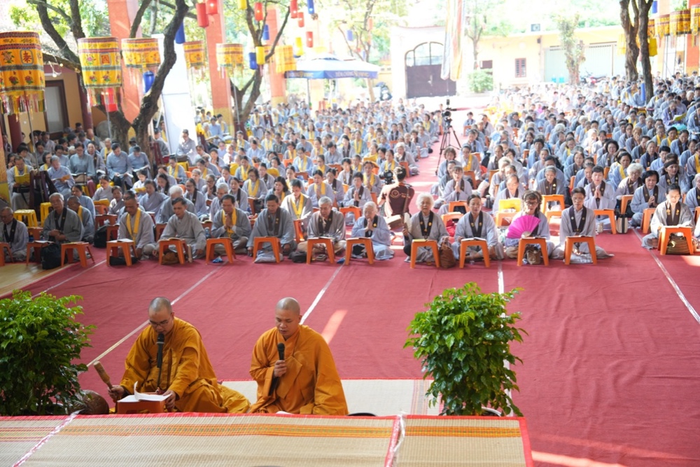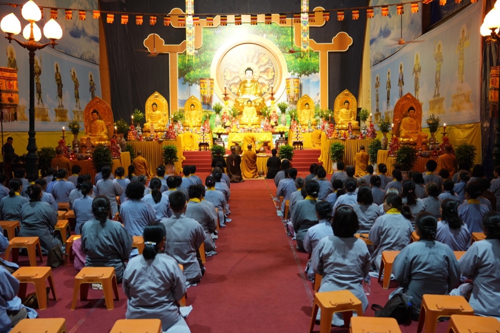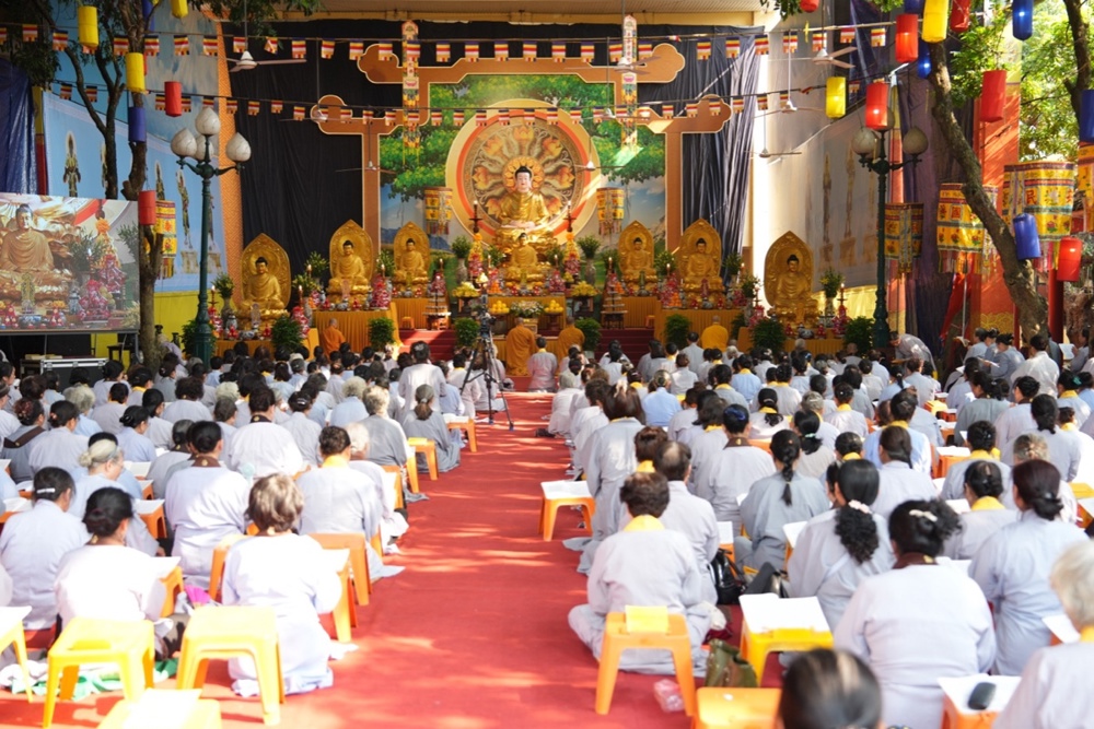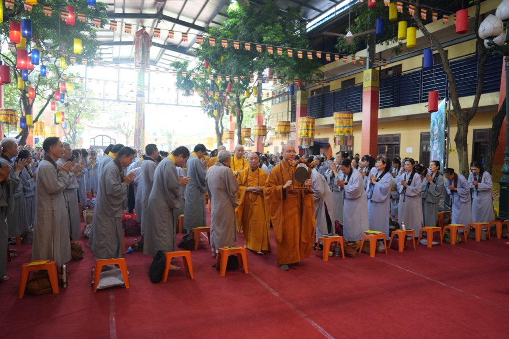 Buổi trưa, dưới sự hướng dẫn của Hòa thượng trụ trì cùng chư Tôn đức, đại chúng thực hiện nghi thức Cúng Ngọ, dùng cơm chay trong chính niệm và lòng biết ơn.