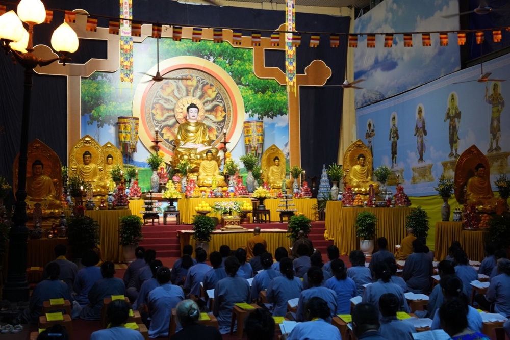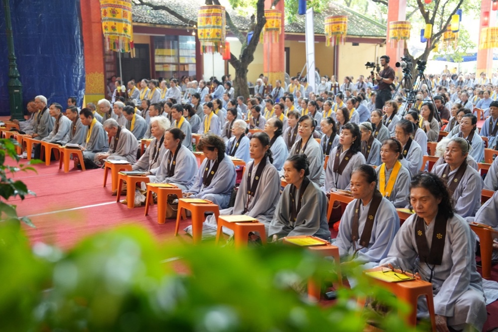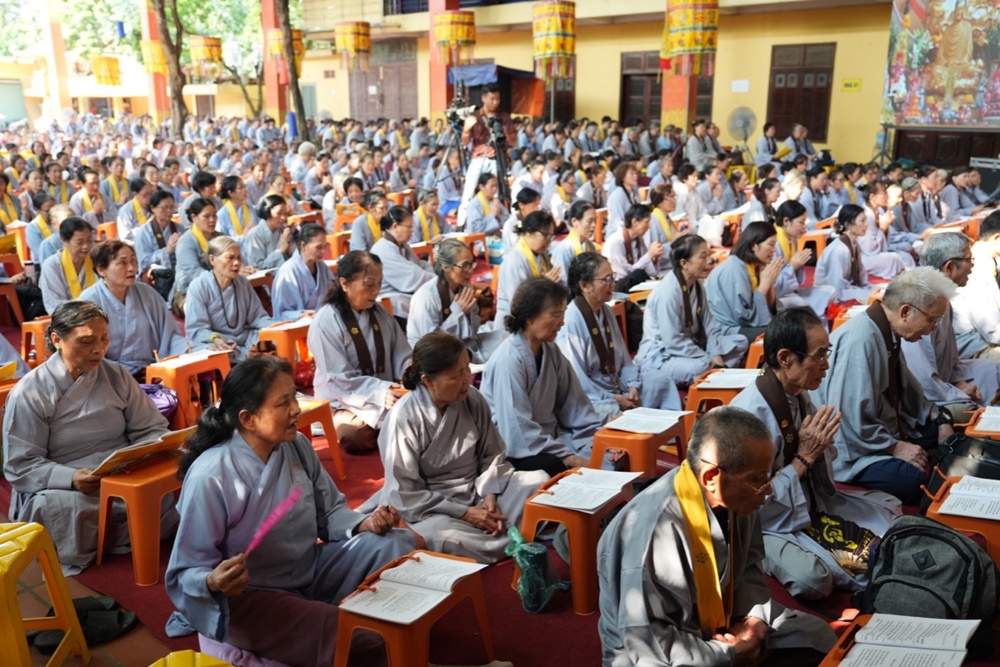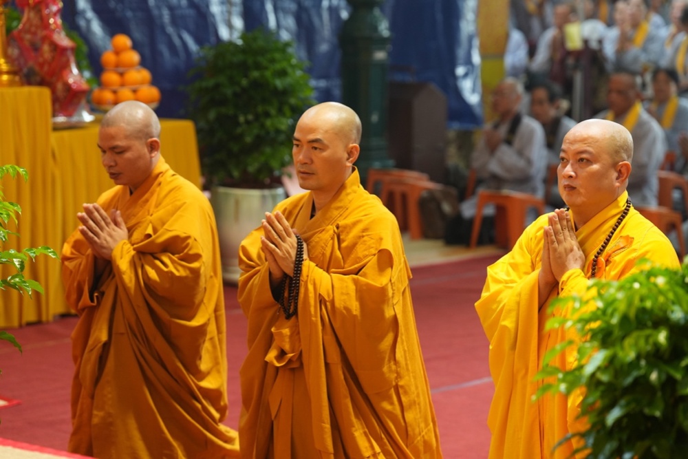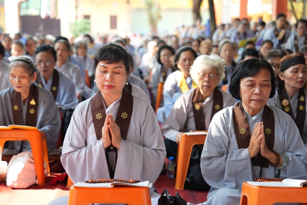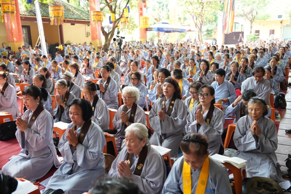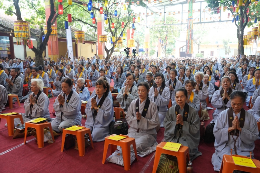 Buổi trưa, dưới sự hướng dẫn của Hòa thượng trụ trì cùng chư Tôn đức, đại chúng thực hiện nghi thức Cúng Ngọ, dùng cơm chay trong chính niệm và lòng biết ơn.