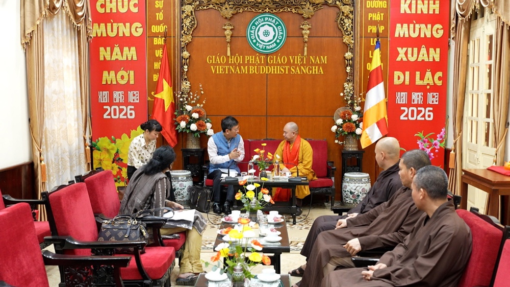 Đón tiếp phái đoàn ngoại giao có Thượng tọa Thích Đức Thiện, Phó Chủ tịch kiêm Tổng Thư ký Hội đồng Trị sự GHPGVN, cùng chư Tôn đức lãnh đạo Văn phòng Trung ương Giáo hội.