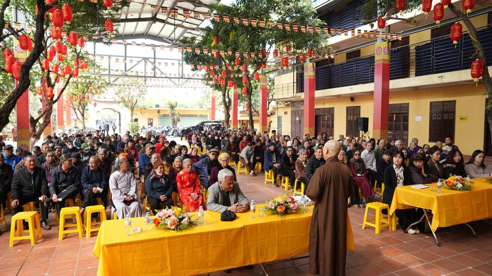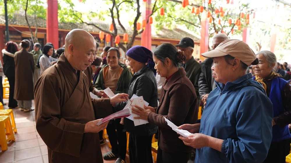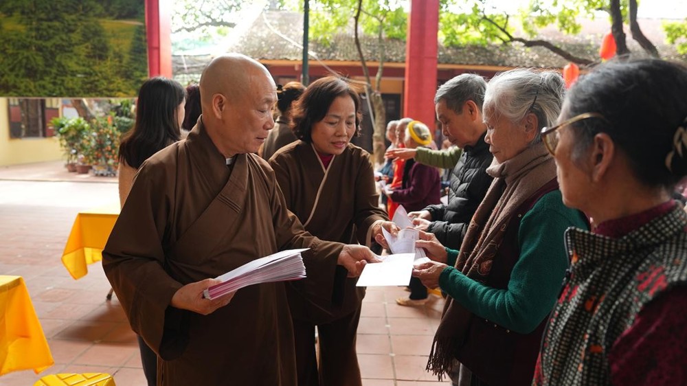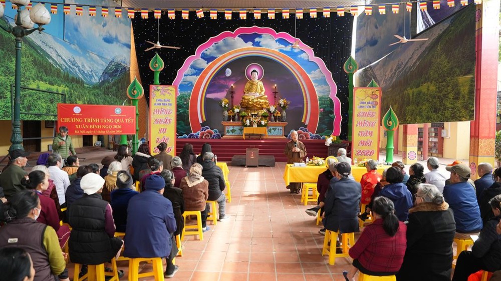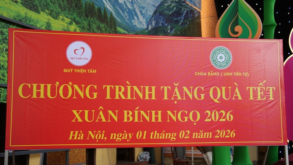 PSO - Chiều ngày 01/02/2026, trong không khí se lạnh của những ngày giáp Tết, khi mùa xuân đang khẽ gõ cửa từng nếp nhà, tại chùa Bằng – Linh Tiên Tự (phường Hoàng Liệt, TP. Hà Nội), Hòa thượng Thích Bảo Nghiêm – Phó Chủ tịch Hội đồng Trị sự GHPGVN, Trưởng Ban Hoằng pháp Trung ương, Trưởng Ban Trị sự GHPGVN TP. Hà Nội, Trụ trì chùa Bằng đã cùng Quỹ Thiện Tâm (Tập đoàn Vingroup) tổ chức trao tặng 300 phần quà Tết đến các hộ gia đình có hoàn cảnh khó khăn thuộc khu dân cư Bằng Liệt.