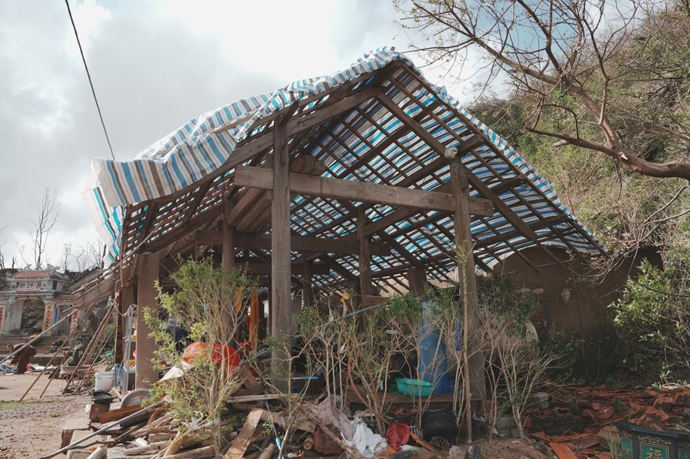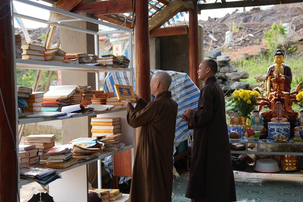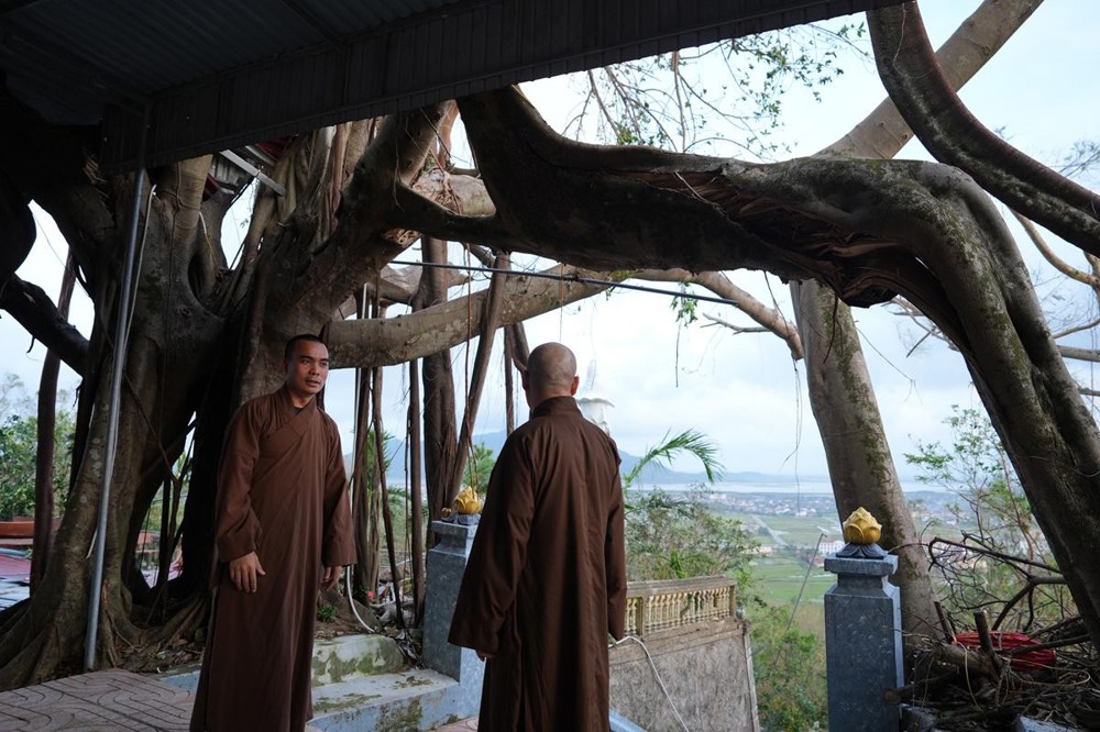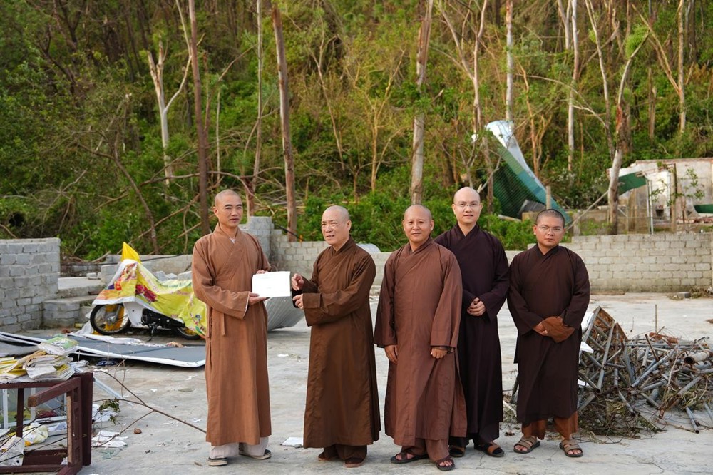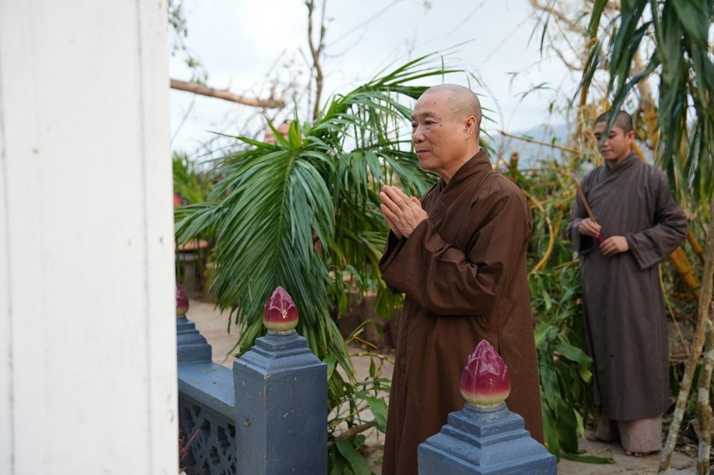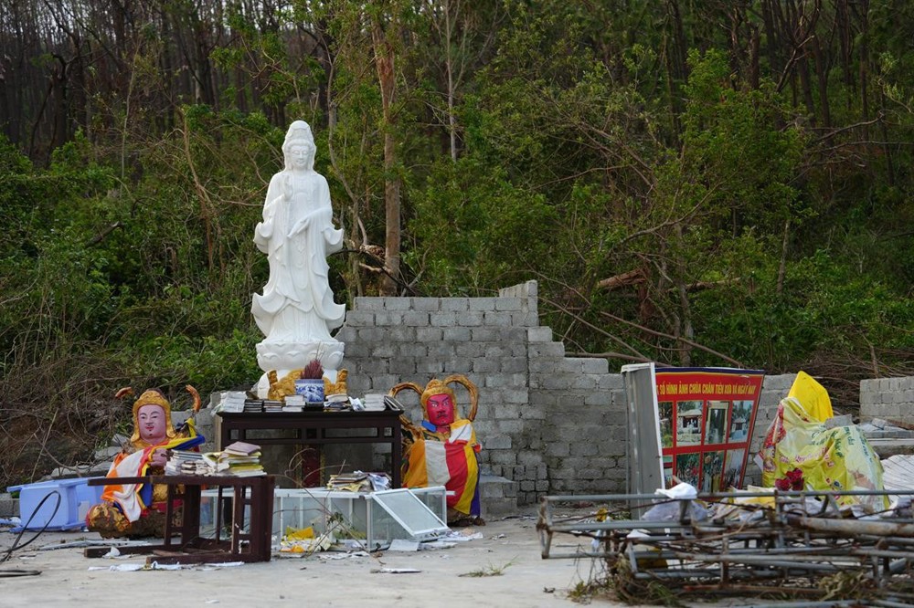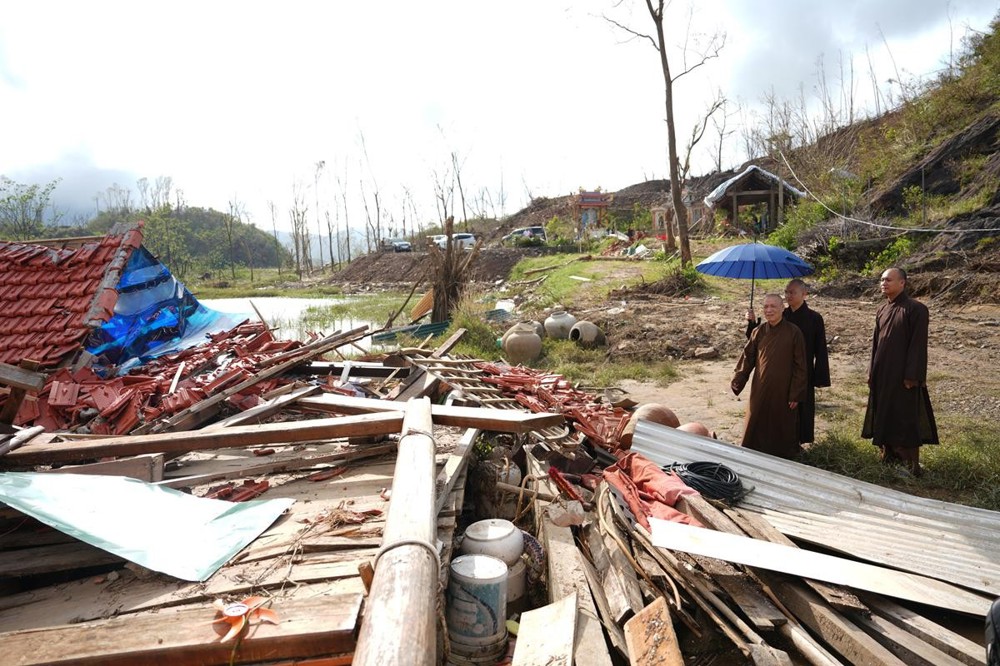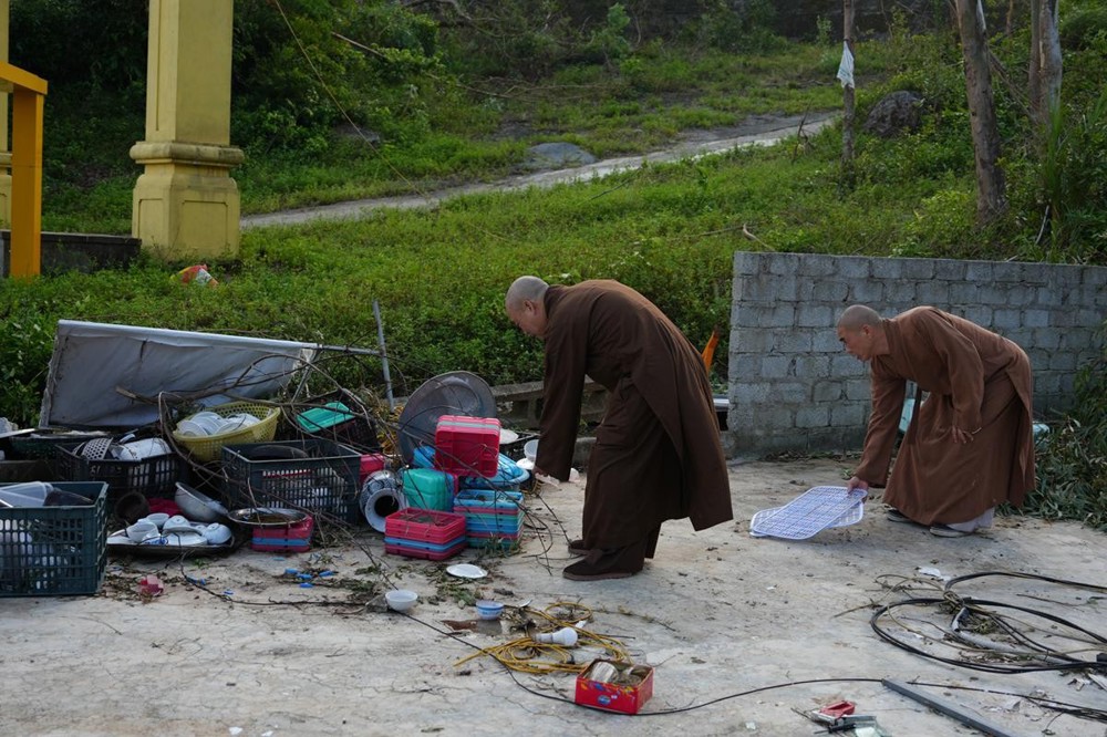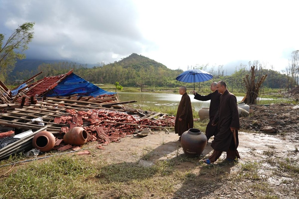 Cơn bão đi qua, để lại sau lưng nó là cảnh tượng tan hoang: mái chùa tốc ngói, gạch đá ngổn ngang; những pho tượng Phật nghiêng ngả, nứt vỡ; những quyển kinh, tập sách bị ướt sũng, phải phơi rải rác khắp sân; hoa viên vốn thanh tịnh nay chỉ còn lại bùn đất và cành cây gãy đổ. Đứng trước cảnh chùa tan hoang, ai cũng nghẹn ngào, xót xa. Chùa vốn là mái nhà tâm linh, là nơi nương tựa tinh thần cho bà con Phật tử, nay cũng chung cảnh ngộ “mái xiêu, vách nát” cùng dân lành.