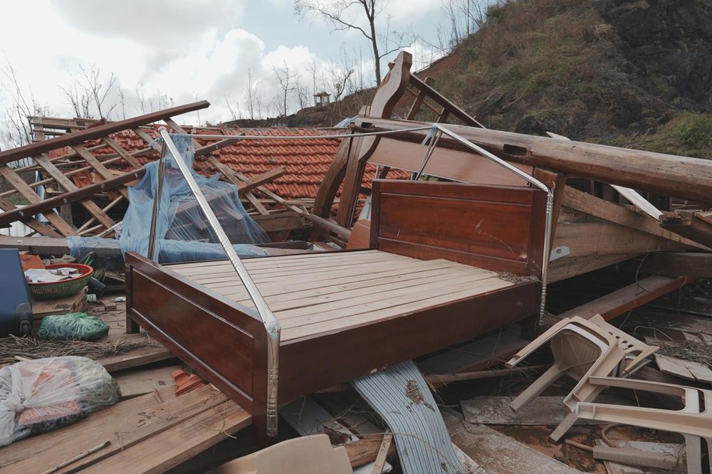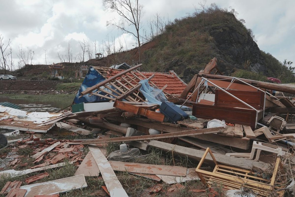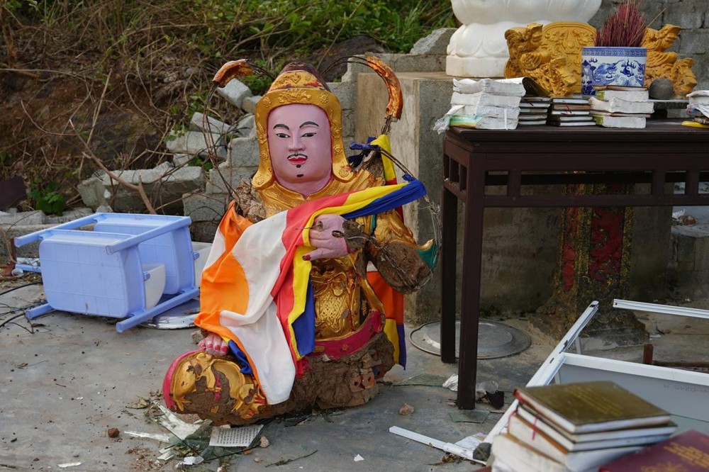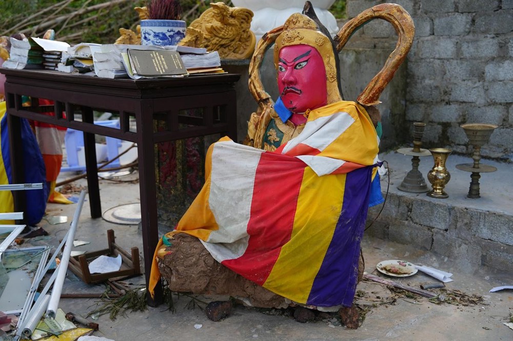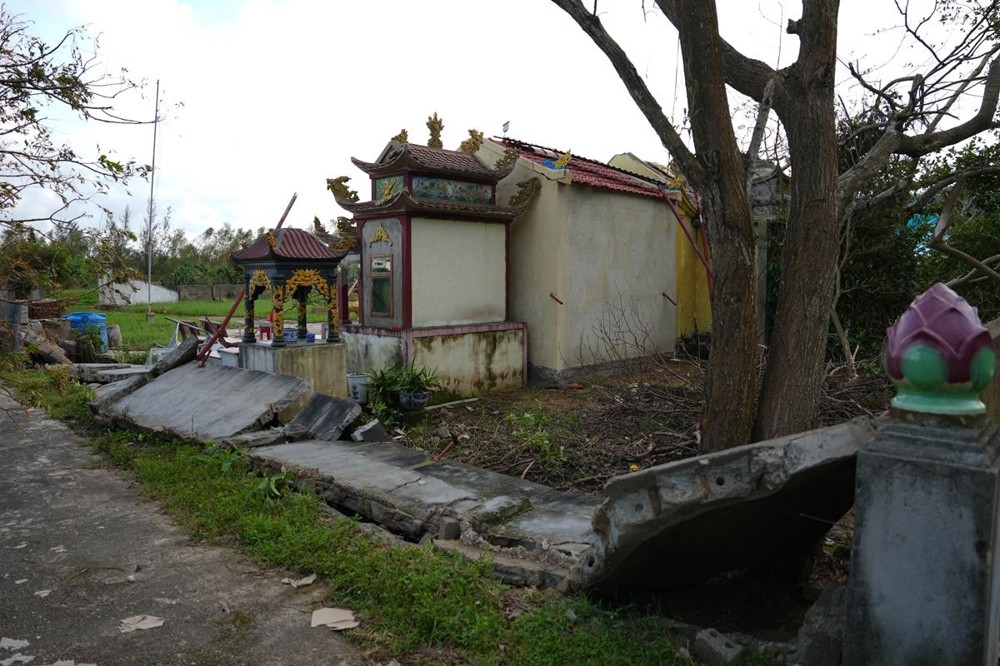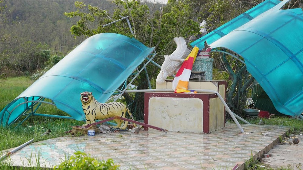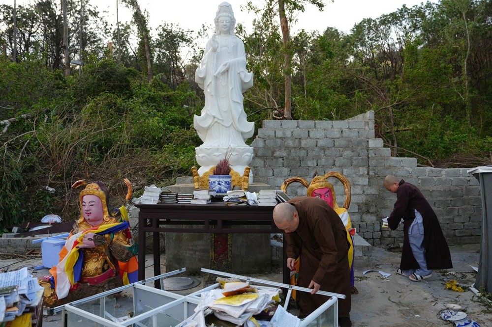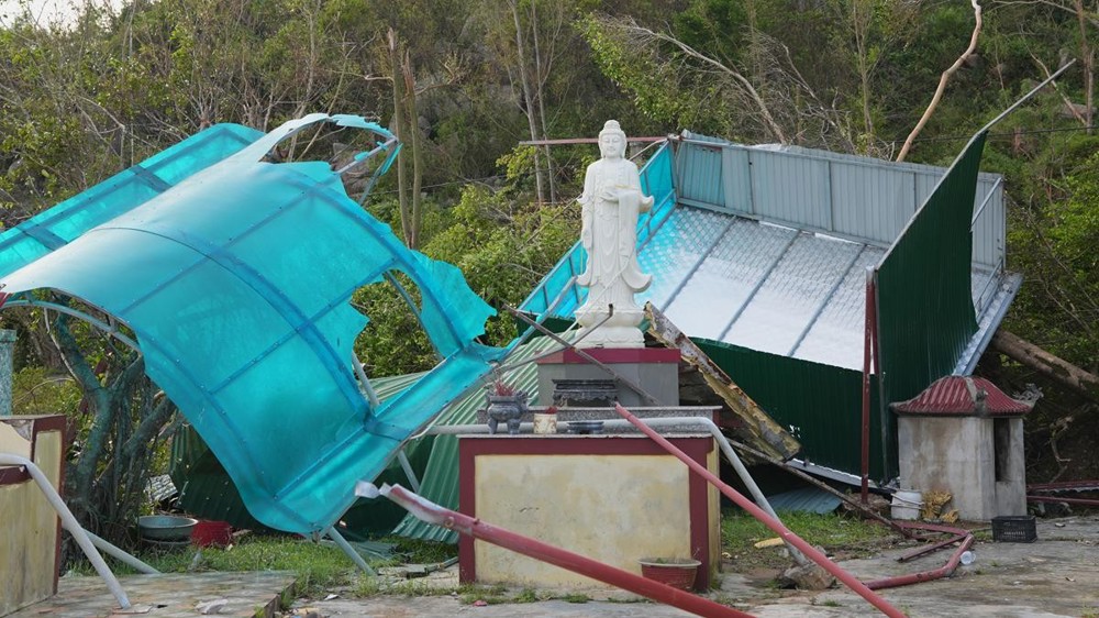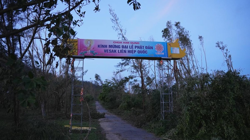 Cơn bão đi qua, để lại sau lưng nó là cảnh tượng tan hoang: mái chùa tốc ngói, gạch đá ngổn ngang; những pho tượng Phật nghiêng ngả, nứt vỡ; những quyển kinh, tập sách bị ướt sũng, phải phơi rải rác khắp sân; hoa viên vốn thanh tịnh nay chỉ còn lại bùn đất và cành cây gãy đổ. Đứng trước cảnh chùa tan hoang, ai cũng nghẹn ngào, xót xa. Chùa vốn là mái nhà tâm linh, là nơi nương tựa tinh thần cho bà con Phật tử, nay cũng chung cảnh ngộ “mái xiêu, vách nát” cùng dân lành.