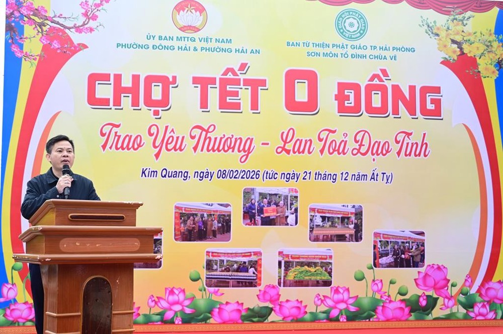 Về phía chính quyền có sự tham dự của ông Bùi Mạnh Phúc – Chủ tịch Hội Chữ thập đỏ thành phố Hải Phòng; Thượng tá Bùi Thanh Liêm – Phó Chủ tịch Hội Nạn nhân chất độc da cam/Dioxin thành phố; ông Tăng Tiến San – Chủ tịch Hội Bảo trợ người khuyết tật và trẻ mồ côi thành phố; ông Nguyễn Văn Quảng – Ủy viên Ban Thường vụ Đảng ủy, Chủ tịch Ủy ban MTTQVN phường Hải An; ông Phạm Công Hưng – Ủy viên Ban Thường vụ Đảng ủy, Chủ tịch Ủy ban MTTQVN phường Đông Hải, cùng đại diện lãnh đạo các ban, ngành của phường Đông Hải, phường Hải An, thành phố Hải Phòng và đông đảo bà con nhân dân về tham dự chương trình “Chợ Tết 0 đồng” tại chùa Kim Quang.