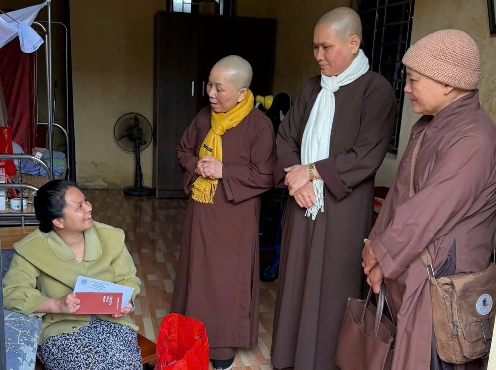 Trong không khí ấm áp những ngày giáp tết, chư tôn đức Ni đã ân cần thăm hỏi sức khỏe, đời sống của các bệnh nhân, đồng thời gửi lời chúc năm mới an lành, nhiều sức khỏe, vững tin để vượt qua bệnh tật (mỗi suất quà gồm tiền mặt, nhu yếu phẩm thiết yếu).