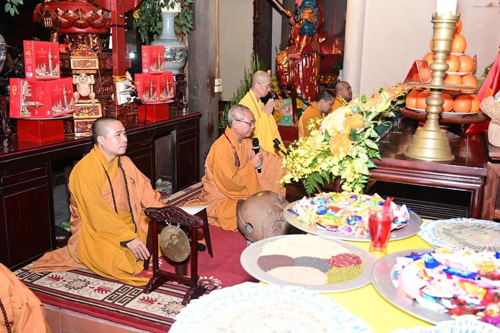 Thời khắc linh thiêng của buổi lễ diễn ra khi chư Tôn đức và toàn thể đại chúng cử hành nghi lễ trì chú, gia trì, an vị kim thân tôn tượng Bổn sư Thích Ca Mâu Ni Phật và tôn tượng Bồ-tát Quán Thế Âm.