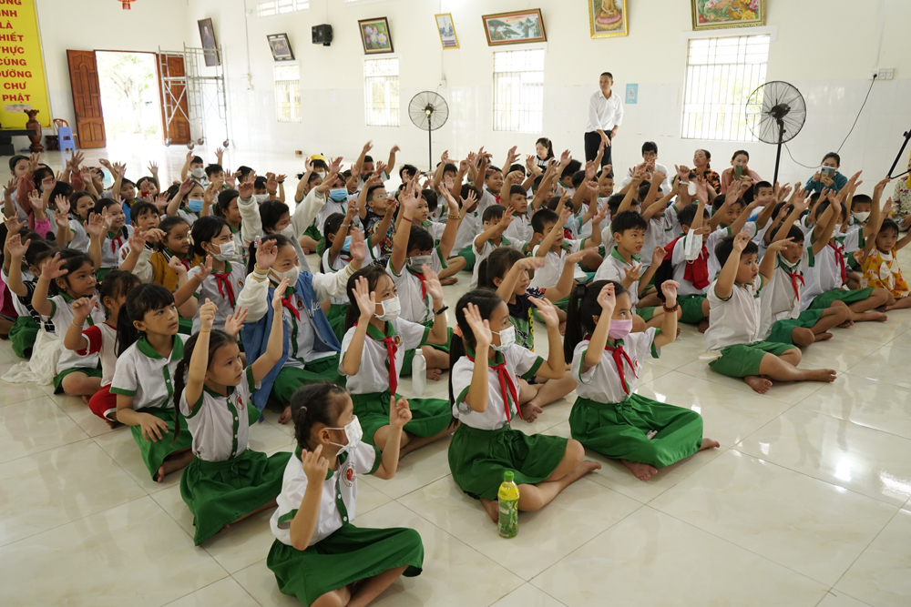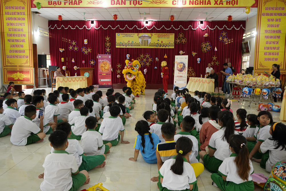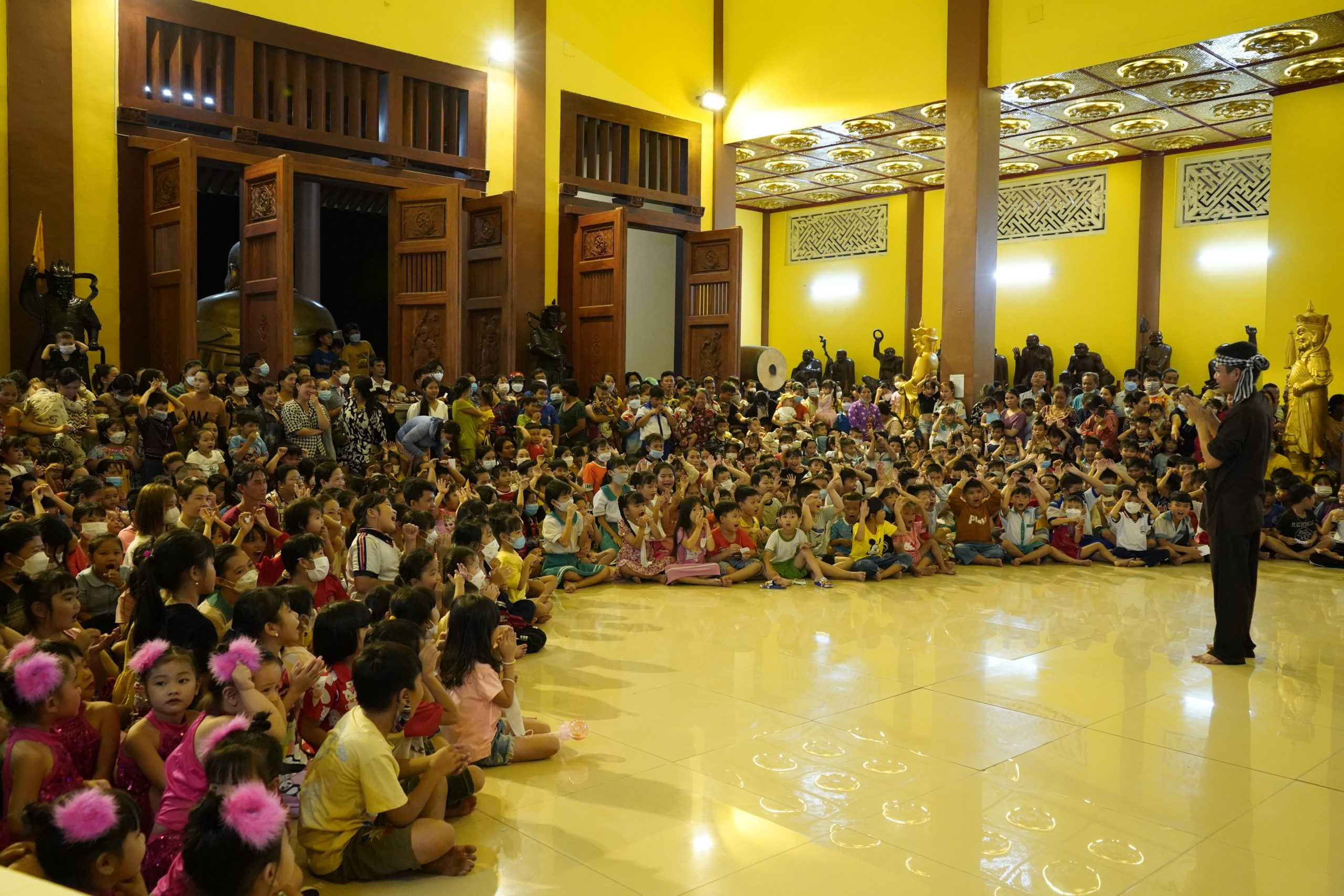 Tại đêm hội, các bạn nhỏ được xem múa lân, chơi trò chơi, nghe sách tấn của Đại đức Thích Minh Ân, trụ trì chùa Minh Đạo, nhận quà Trung thu trong niềm vui… Theo đó, Đại đức đã cảm ơn chính quyền địa phương tạo điều kiện cho chương trình diễn ra tốt đẹp. Đồng thời, chúc các bạn nhỏ có Tết Trung thu ấm áp, học giỏi, chăm ngoan…