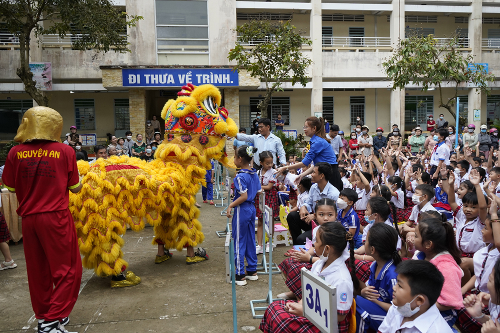 Ngay sau các trò chơi, giao lưu trong tiếng trống lân cùng sự dẫn dắt đầy vui tươi của chú Cuội, chị Hằng, xem biểu diễn văn nghệ và trao quà đến các em nhỏ tổng 1.000 phần quà được trao tại đây.