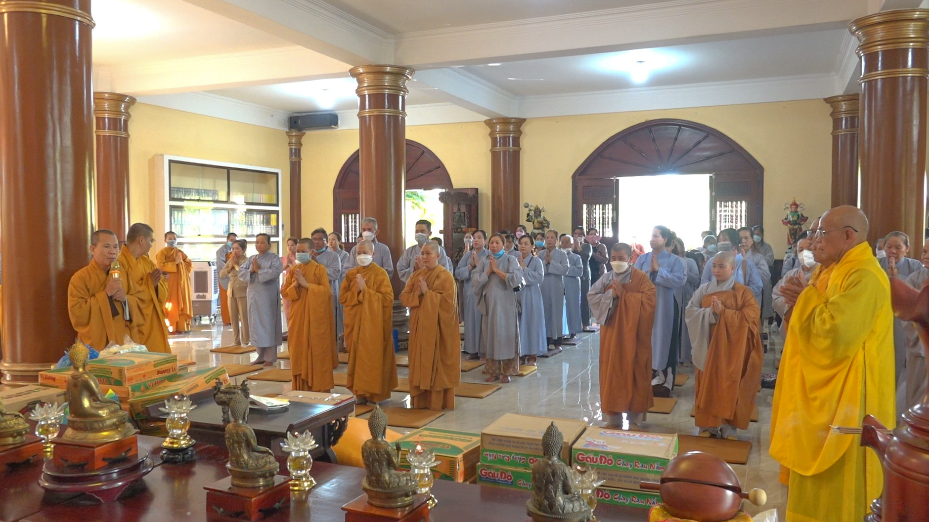 PSO - Ngày 24/6/2022 (nhằm 26/5 Nhâm Dần), đoàn BTS GHPGVN huyện Phụng Hiệp và Phật tử chùa Long An (thị xã Long Mỹ) đã đến thăm và cúng dường trường hạ Tăng tại chùa Vĩnh Hiệp (phường Ngã Bảy, thị xã Ngã Bãy) và trường hạ Ni chùa Quốc Thanh (TP. Vị Thanh, tỉnh Hậu Giang). Hướng dẫn đoàn có TT. Thích Thông Hạnh – Ủy viên HĐTS, Phó ban Thường trực BTS GHPGVN tỉnh Hậu Giang, trụ trì chùa Long An; TT. Thích Thiện Kim – Trưởng ban Kinh tế Tài chánh Phật giáo tỉnh, Trưởng BTS GHPGVN huyện Phụng Hiệp cùng chư Tôn đức Thường trực BTS Phật giáo huyện Phụng Hiệp. Đón tiếp đoàn tại trường hạ Tăng có TT. Thích Phước Thành – Ủy viên HĐTS, Trưởng BTS GHPGVN tỉnh Hậu Giang, Thiền chủ trường hạ; ĐĐ. Thích Phước Dũng – Phó ban kiêm Chánh Thư ký BTS, Phó thiền chủ; tại trường hạ Ni có NS. Thích Nữ Diệu Ngọc – Trưởng Phân ban Ni giới tỉnh cùng chư Tăng Ni hành giả an cư tại hai trường hạ. Tại hai Hạ Trường TT. Thích Chiếu Dụng – Trưởng ban Giáo dục Phật giáo tỉnh Hậu Giang đại diện đoàn tác bạch cúng dường trước sự chứng minh của chư Tôn đức trong Ban chức sự hạ trường và quý hành giả An cư kiết hạ, với những vật phẩm và tịnh tài. Đại diện Ban chức sự trường hạ, TT. Thích Phước Thành gửi lời tri ân và tán dương công đức Ban Trị sự huyện Phụng hiệp cũng như quý Phật tử chùa Long An. Thượng tọa cho biết sau 2 năm giảng cách xã hội do dịch COVID 19, mùa An cư Kiết hạ năm nay, Phật giáo tỉnh Hậu Giang đón nhận 60 vị hành giả tại 02 trường hạ tập trung là chùa Vĩnh Hiệp (Tp. Ngã Bãy) dành cho chư Tăng và chùa Quốc Thanh (Tp. Vị Thanh) dành cho chư Ni. Riêng tại trường hạ Tăng chùa Vĩnh Hiệp có 36 vị hành giả an cư.