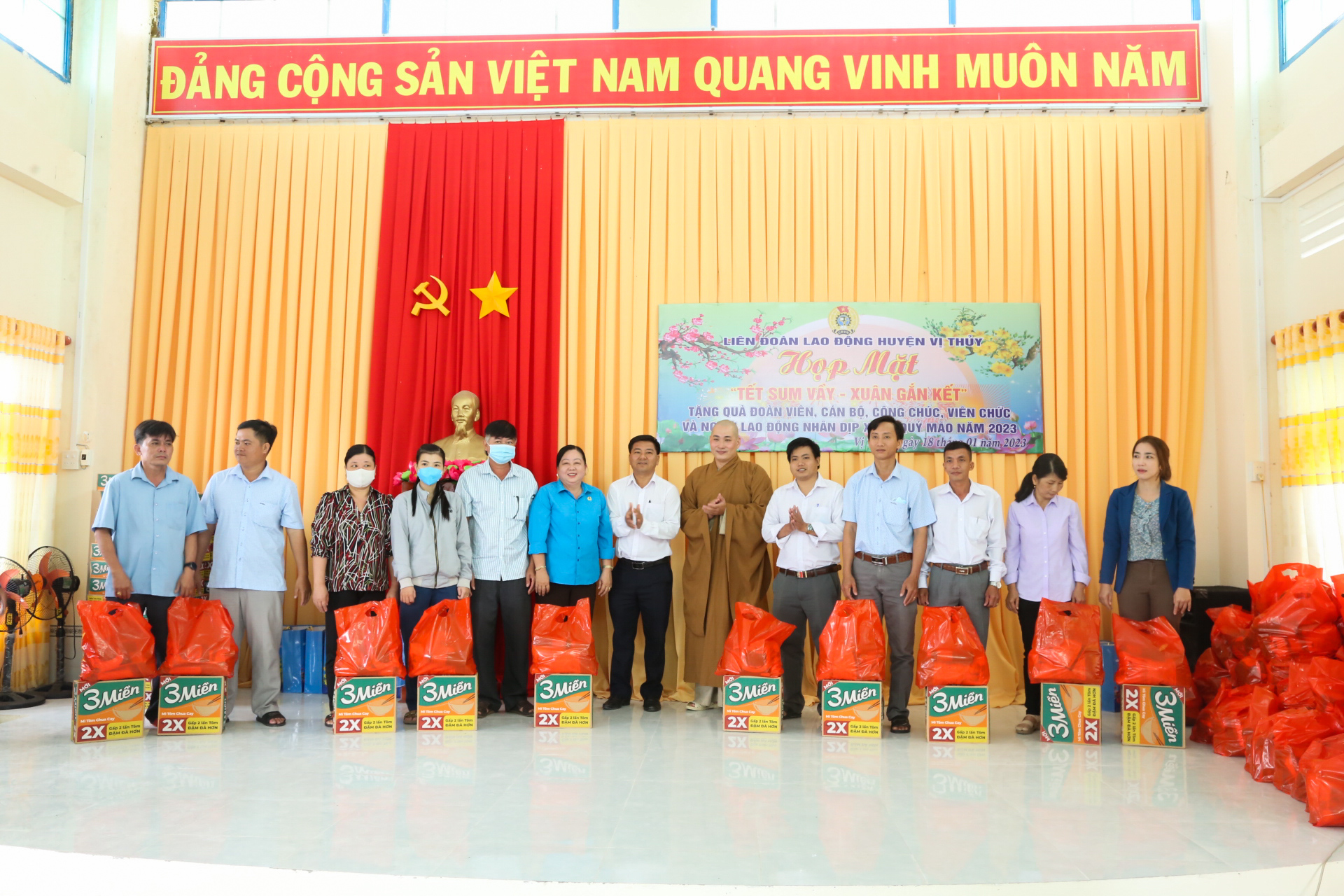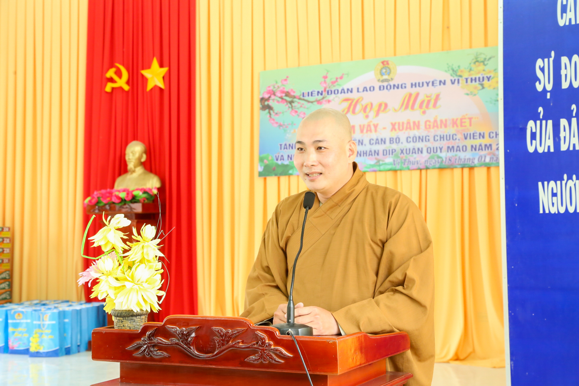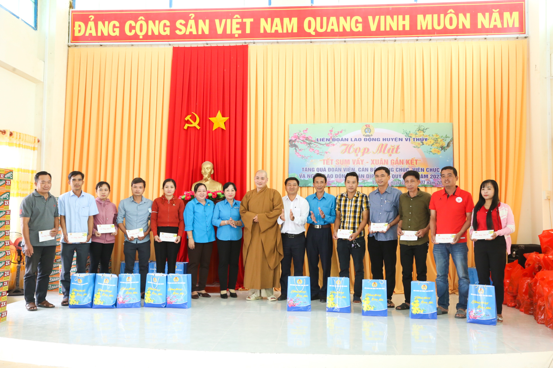 Nhằm chăm lo cho đoàn viên, cán bộ, công chức, người lao động có hoàn cảnh khó khăn đón xuân được sung túc và phấn khởi hơn. ĐĐ. Thích Phước Thuận cùng Huyện ủy (huyện Vị Thủy) đã trao tặng 100 phần quà Tết đến đoàn viên và công đoàn huyện.