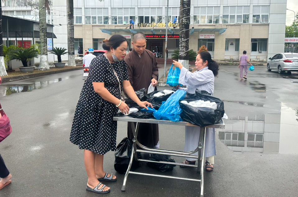 Đây là chương trình định kỳ của bếp ăn tình thương đạo tràng. Suốt thời gian dài vừa qua quý Phật tử cùng chư Tôn đức đạo tràng đã trao tặng những phần cơm chay yêu thương đến với quý bà con tại bệnh viện Đa khoa thị xã Long Mỹ. Đó chính là tâm nguyện của ĐĐ. Thích Minh Nhựt trụ trì cùng quý Phật tử trong Đạo tràng, dành trọn tình thương, sự chia sẻ đến các bệnh nhân đang điều trị bệnh cũng như thân nhân đi chăm sóc bệnh nhân tại đây.
