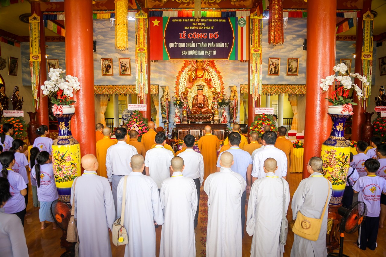 Thay mặc Thường trực Ban Trị sự tỉnh, TT. Thích Thông Hạnh tuyên đọc quyết định chuẩn y thành phần nhân sự Ban Hướng dẫn Phật tử tỉnh Hậu Giang nhiệm kỳ 2022 - 2027. Theo đó, Ban Hướng dẫn Phật tử tỉnh gồm 13 thành viên do ĐĐ. Thích Quảng Nguyên đảm nhiệm Trưởng ban.