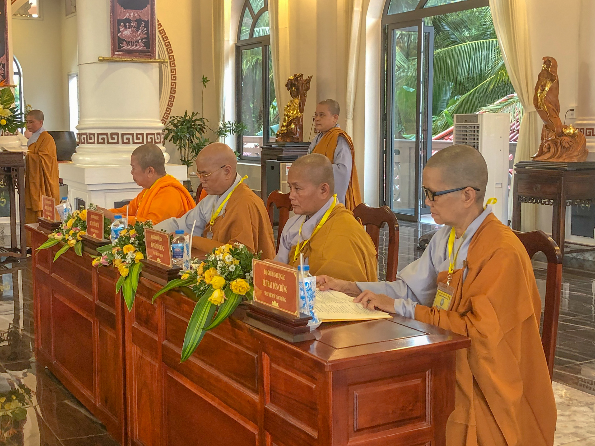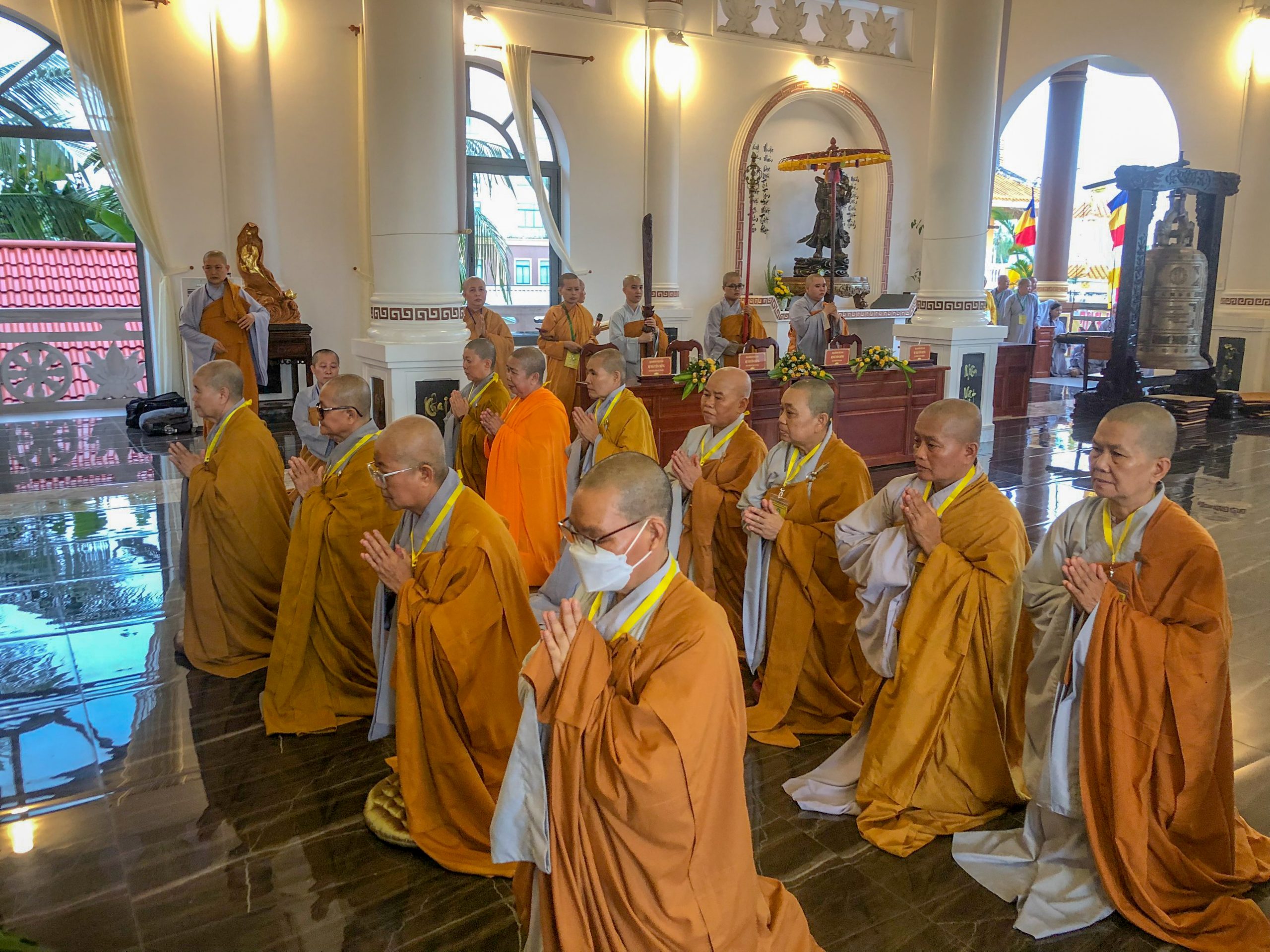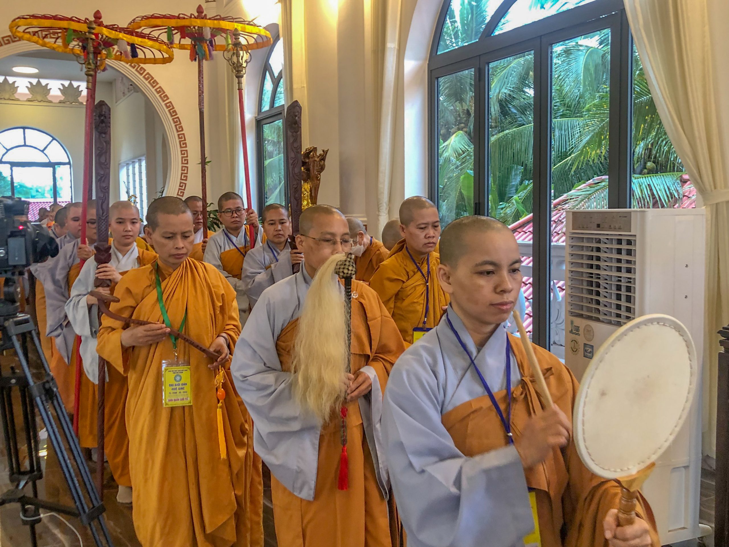 Tại giới trường Tăng, Ni trưởng Thích Nữ Như Thân - Giáo thọ A xà lê Giới đàn Ni, đã khải bạch Đại Tăng: Các Giới tử đã tu tập chuyên cần, hoàn thành Bổn pháp Yết-ma trao truyền Tỳ-kheo Ni giới trước Hội đồng Giới sư Ni. Hôm nay, đại diện cho Hội đồng Giới Sư Ni dẫn các các Giới tử này đến đại Tăng cầu xin Chánh pháp Yết ma.