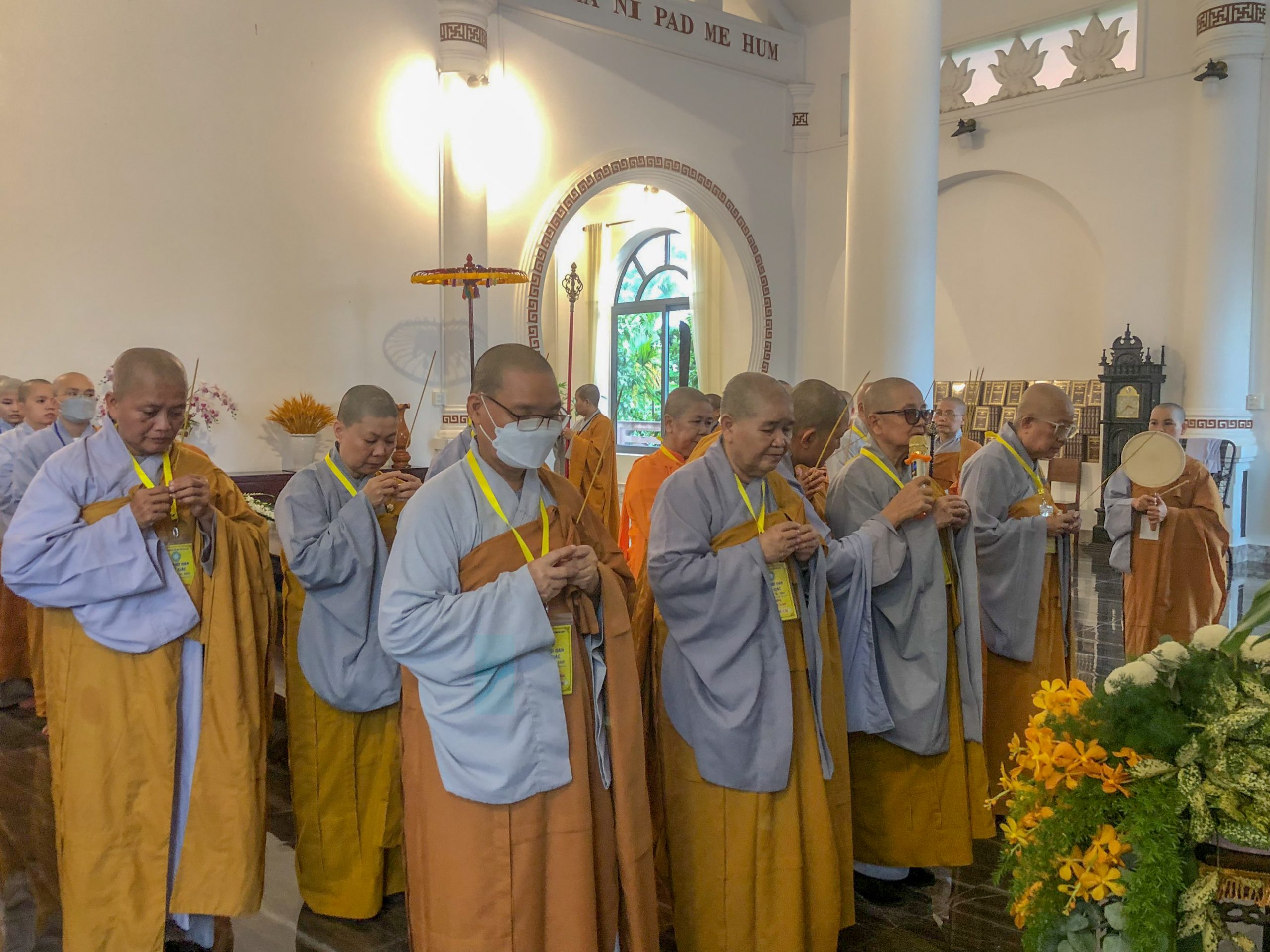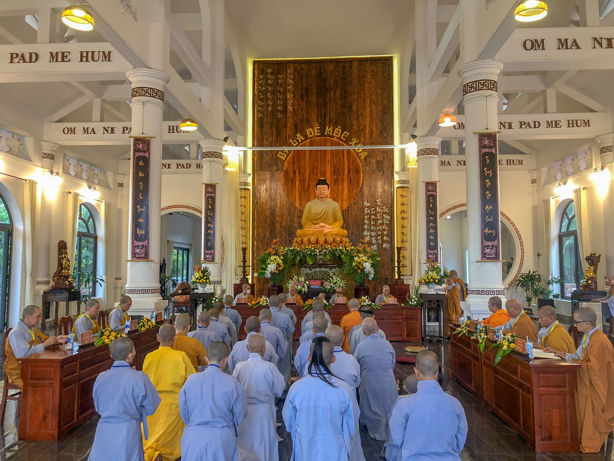 Chư Tôn đức giới sư đã quang lâm giới trường tại chánh điện đảnh lễ Tam bảo và trang nghiêm thanh tịnh truyền giới pháp như luật đến các giới tử.
