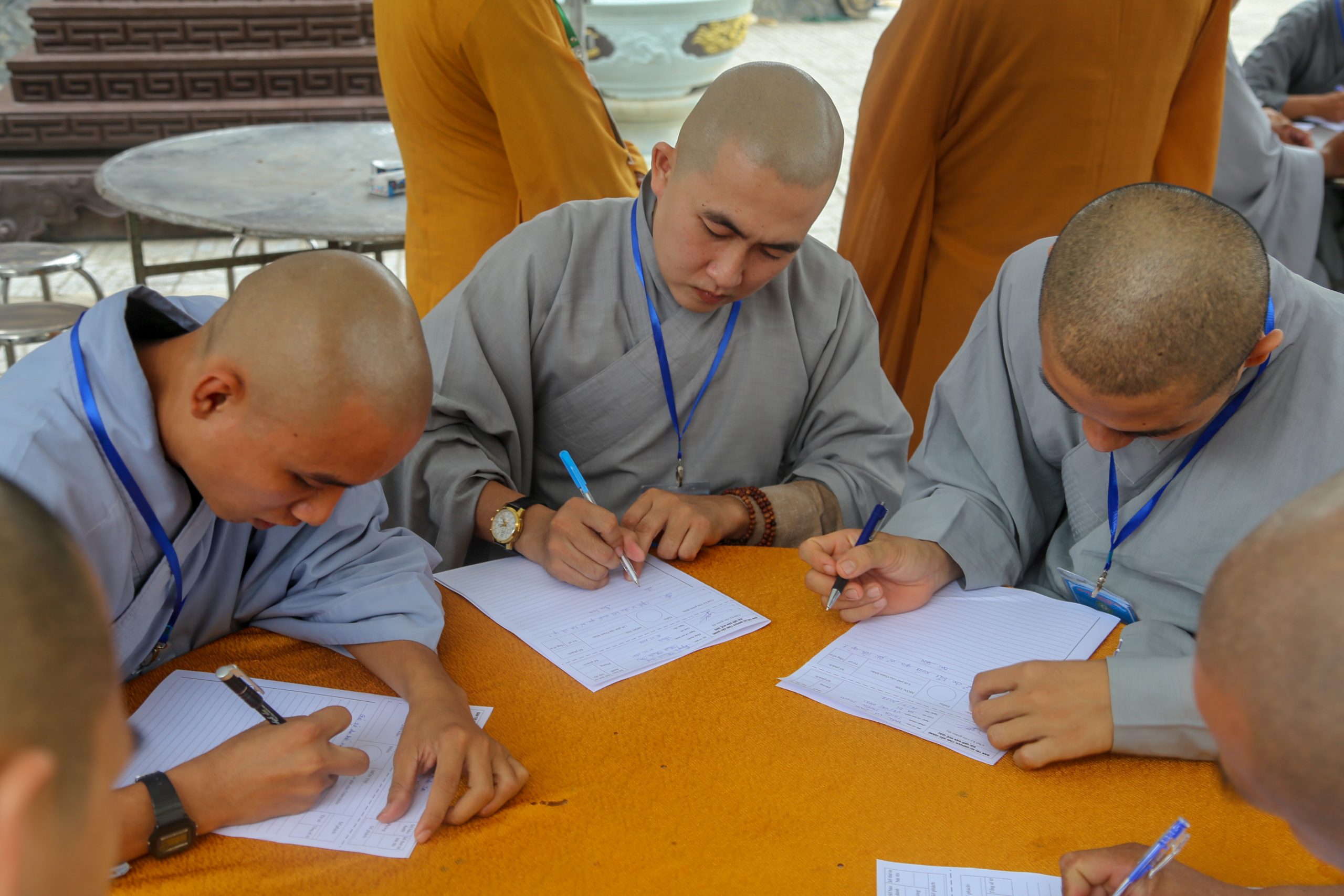 Sau đó, chư Tôn đức Ban Tổ chức Đại giới đàn đã chính thức mở đề thi và trao cho Ban Giám khảo, các giới tử bắt đầu làm bài thi trong sự giám sát chặt chẽ của Ban Giám thị. Các Giới tử đã nghiêm túc làm bài, thể hiện rõ tinh thần cần cầu giới pháp thanh tịnh.