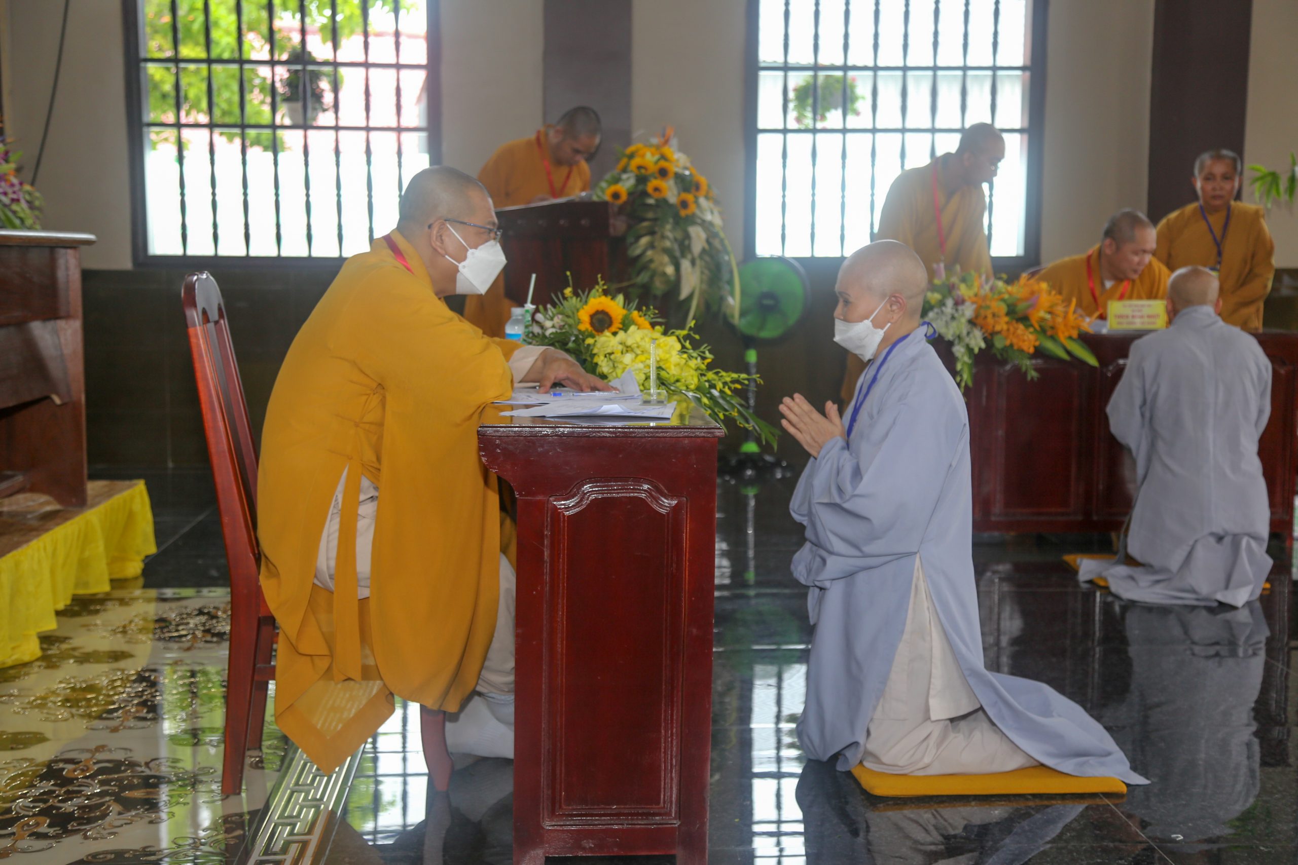 Tại đây, Ban Tổ chức tại hai giới trường tiến hành điểm danh và gửi lời chào mừng, động viên khích lệ các giới tử. Đồng thời chư Tôn đức ân cần chỉ giáo, nhắc nhở về oai nghi phép tắc, sinh hoạt phổ biến nội quy giới đàn và những điều cần thiết trong suốt thời gian diễn ra Đại giới đàn, cũng như nêu cao giá trị của Giới luật và trách nhiệm của một sứ giả Như Lai trước và sau khi lãnh thọ giới pháp.
