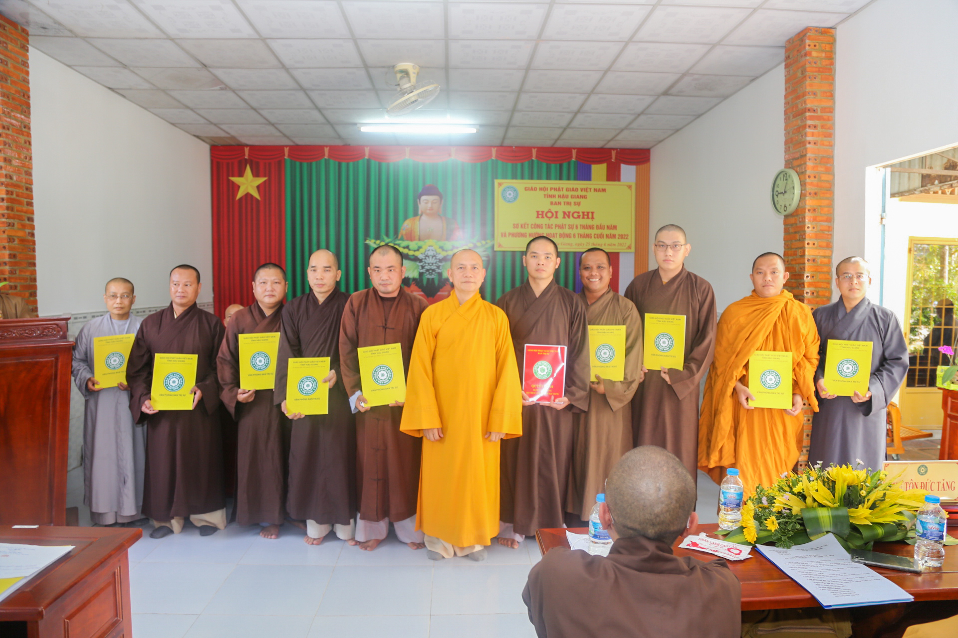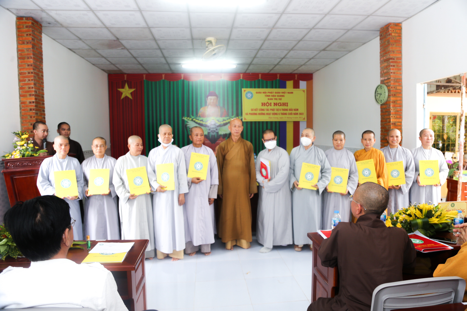 Chứng minh và tham dự phiên họp có: HT.Thích Thiện Huệ - Chứng minh BTS GHPGVN tỉnh Hậu Giang; TT. Thích Phước Thành – Ủy viên HĐTS, Trưởng BTS GHPGVN tỉnh; TT. Thích Thông Hạnh – Ủy viên HĐTS, Phó ban Thường trực BTS GHPGVN tỉnh; ĐĐ. Thích Phước Dũng – Phó BTS kiêm Chánh thư ký GHPGVN tỉnh; cùng chư Tôn đức Thường trực BTS tỉnh, Trưởng các ban ngành, bộ phận văn phòng, lãnh đạo BTS các huyện, thị, thành phố.