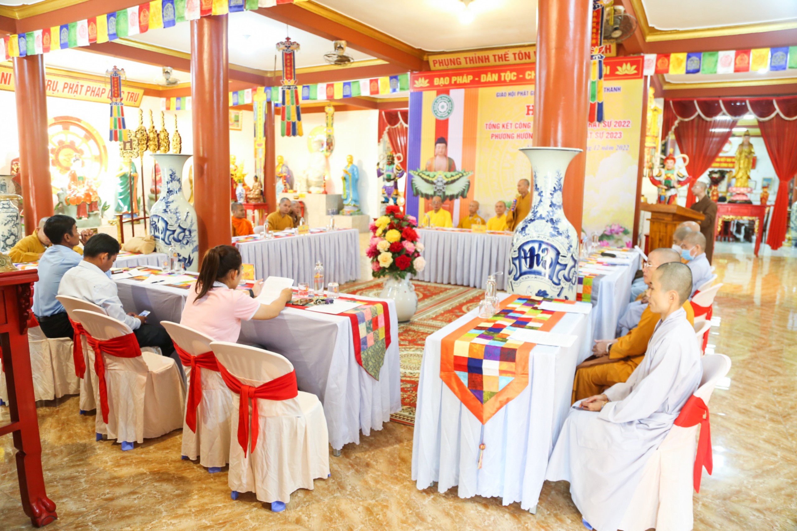 Nhằm hoàn thiện bản báo cáo công tác Phật sự năm 2022, phương hướng nhiệm vụ năm 2023 hội nghị đã lấy ý kiến của chư Tôn đức Tăng Ni và quý đại biểu tham dự.