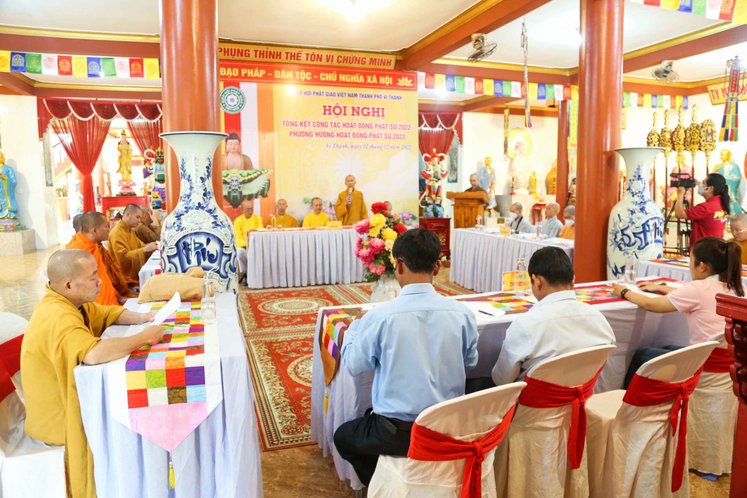 Theo đó, Phật giáo TP. Vị Thanh hiện có 10 cơ sở Tự viện và 1 điểm sinh hoạt tôn giáo tập trung với 27 vị Tăng Ni và 9257 tín đồ đã Quy y Tam bảo. Trong năm qua, BTS GHPGVN TP. Vị Thanh nỗ lực phối hợp cùng BTS tỉnh tổ chức thành công nhiều Phật sự quan trọng của Phật giáo tỉnh nhà như: Đại lễ Phật Đản, An cư kiết hạ, Đại giới đàn Huệ Giác và đặc biệt là tổ chức thành công Đại hội đại biểu Phật giáo tỉnh lần thứ X và Đại hội đại biểu Hội ĐKSSYN tỉnh lần thứ III. Nhằm hướng dẫn Phật tử tu học theo đúng Chánh pháp các tự viện tại TP. Vị Thanh tổ chức các khóa tu: bát quan trai, một ngày an lạc, Sống chậm để lắng nghe… Các công tác từ thiện xã hội luôn được Phật giáo thành phố quan tâm và thực hiện với tổng kinh phí là 1 tỷ 650 triệu đồng.
