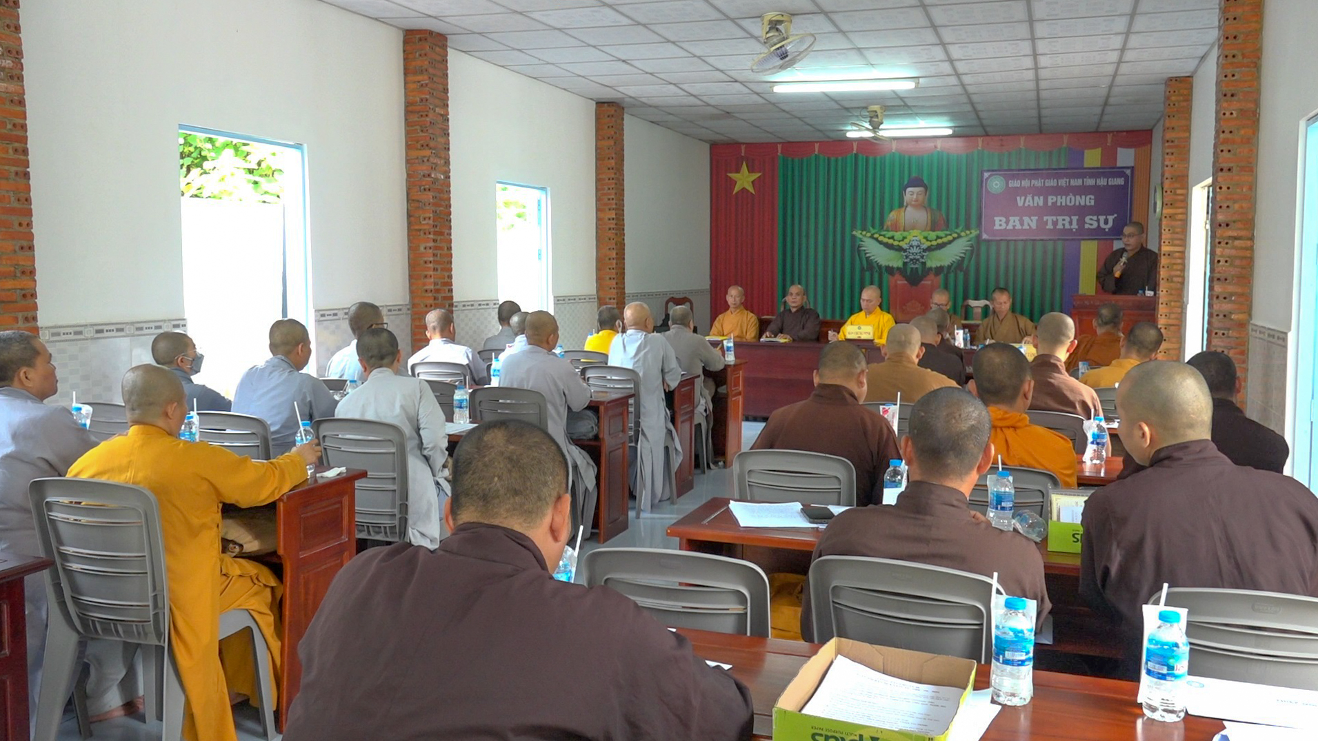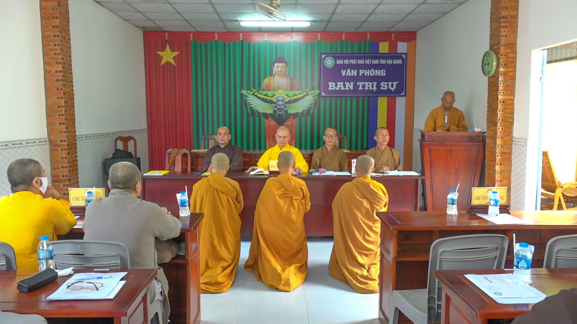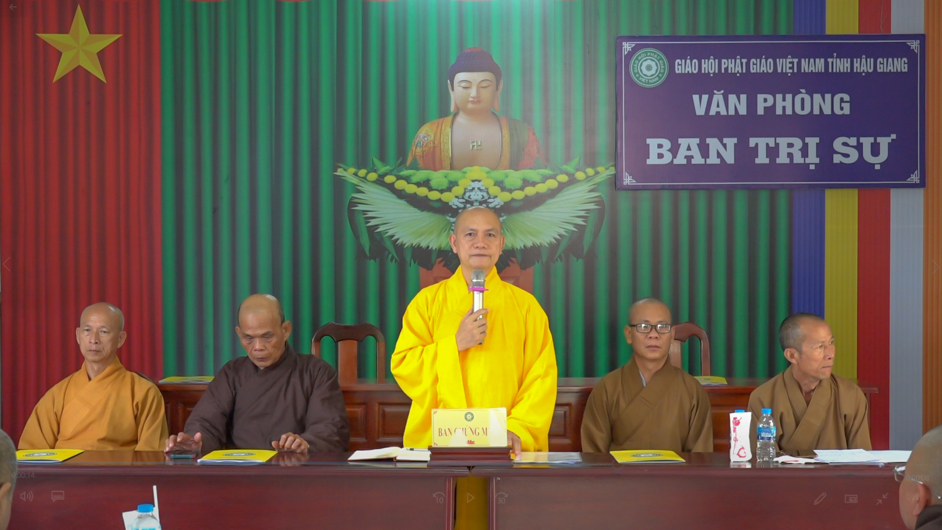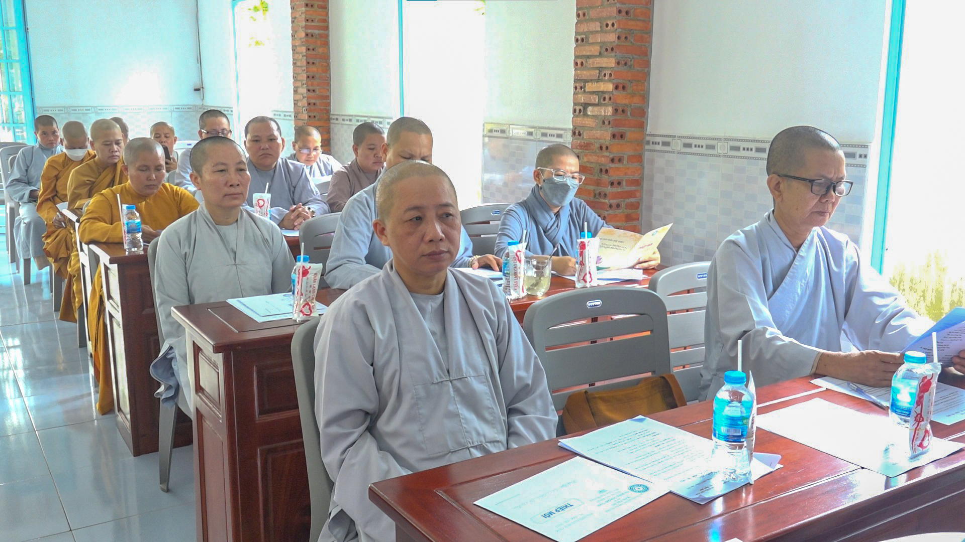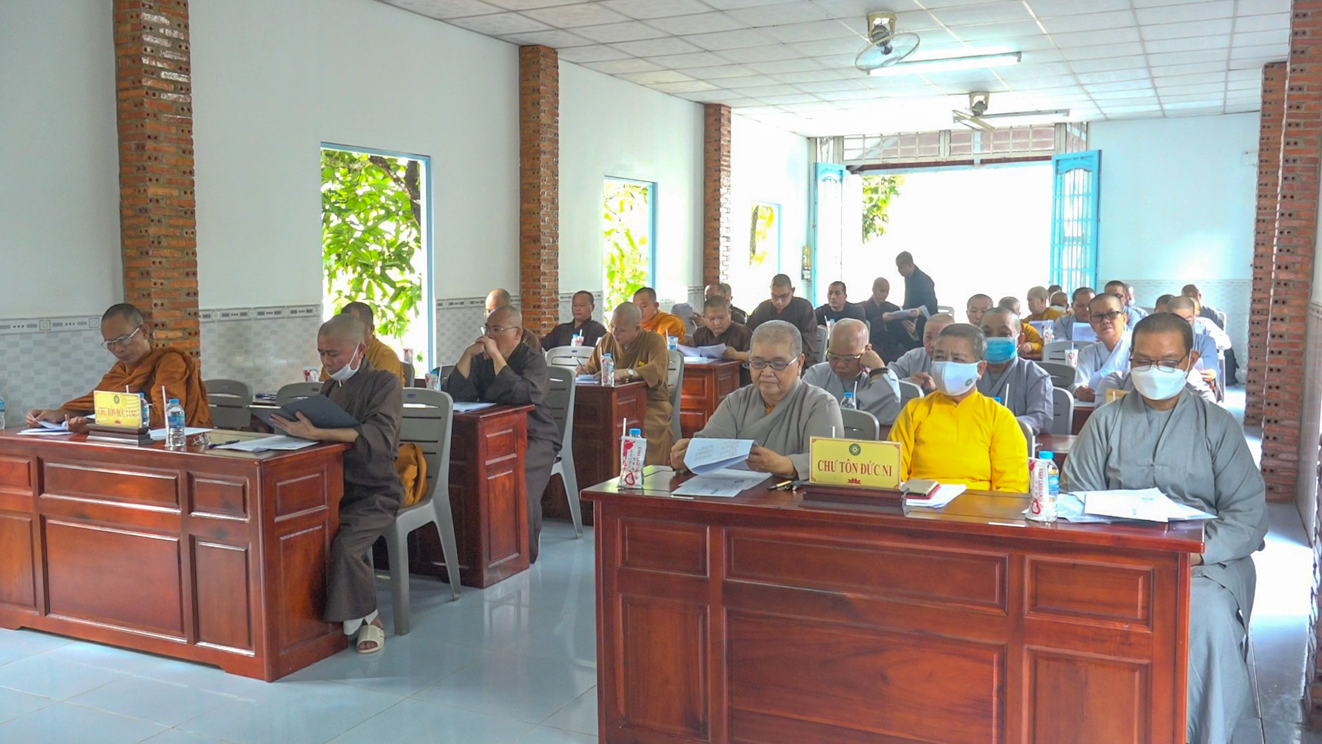 Chứng minh và tham dự phiên họp có: TT. Thích Phước Thành – Ủy viên HĐTS, Trưởng BTS GHPGVN tỉnh; TT. Thích Thông Hạnh – Ủy viên HĐTS, Phó ban Thường trực BTS GHPGVN tỉnh; ĐĐ. Thích Phước Dũng – Phó BTS kiêm Chánh thư ký GHPGVN tỉnh; cùng chư Tôn đức Thường trực BTS tỉnh, Trưởng các ban ngành, bộ phận văn phòng và lãnh đạo BTS các huyện, thị, thành phố cùng về tham dự.