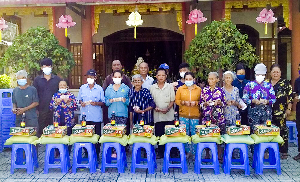 Nhân dịp này, chiều cùng ngày, ĐĐ. Thích Quảng Thiền - Trụ trì chùa Phước Nghiêm cũng đã phát 100 phần quà cho bà con hoàn cảnh khó khăn tại địa phương. Những phần quà gồm: gạo, mì, nước tương và tịnh tài…Với tổng kinh phí là 25 triệu đồng.