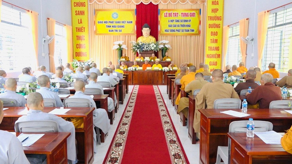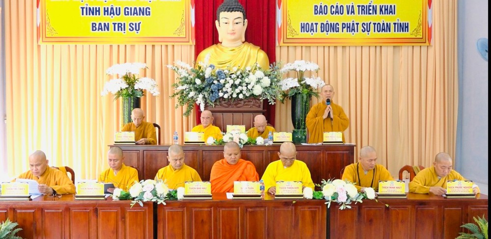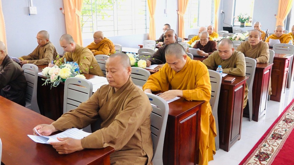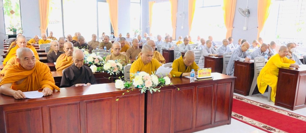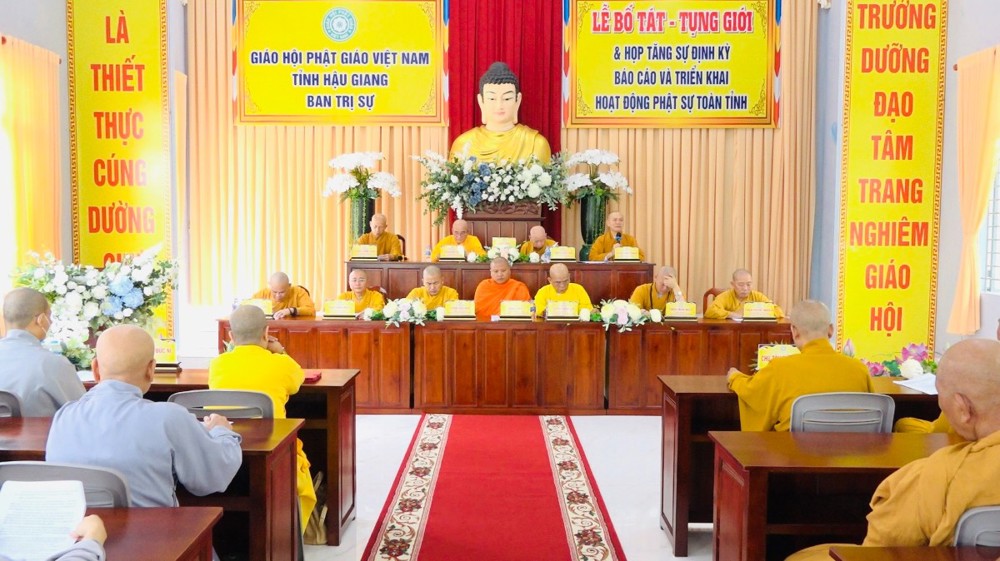 Tiếp đó, chư Tôn đức quang lâm hội trường tiến hành phiên họp thường lệ. Chứng minh và tham dự phiên họp có: HT. Thích Huệ Hóa, HT. Thích Thiện Huệ - Đồng Chứng minh BTS GHPGVN tỉnh Hậu Giang; TT. Thích Phước Thành - Ủy viên HĐTS, Trưởng BTS kiêm Trưởng ban Tăng sự GHPGVN tỉnh; TT. Thích Thông Hạnh - Ủy viên HĐTS, Phó trưởng ban Thường trực BTS GHPGVN tỉnh cùng chư Tôn đức Ban Thường trực, thành viên BTS, chư Tôn đức Tăng, Ni trụ trì các tự viện trong toàn tỉnh tham dự.