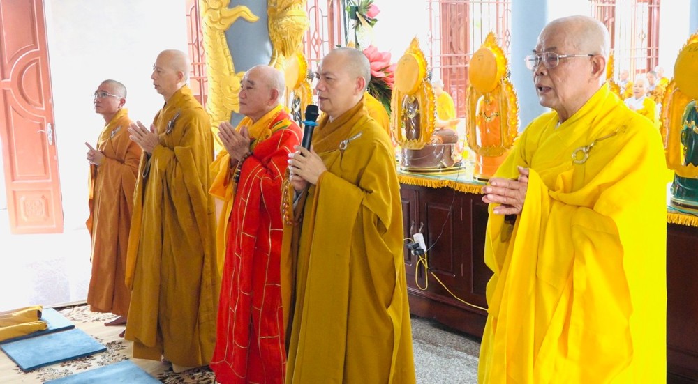 PSO – Sáng ngày 16/10/2023 (nhằm 02/9 năm Quý Mão) tại chùa Quan Âm (phường Thuận An, thị xã Long Mỹ, tỉnh Hậu Giang) BTS GHPGVN tỉnh Hậu Giang, chư Tôn đức Tăng Ni trụ trì trong toàn tỉnh đã trở về tham dự buổi trì tụng giới bổn và nghe giáo giới từ chư Tôn đức Giáo phẩm, sau đó tổ chức phiên họp tăng sự hàng tháng.
