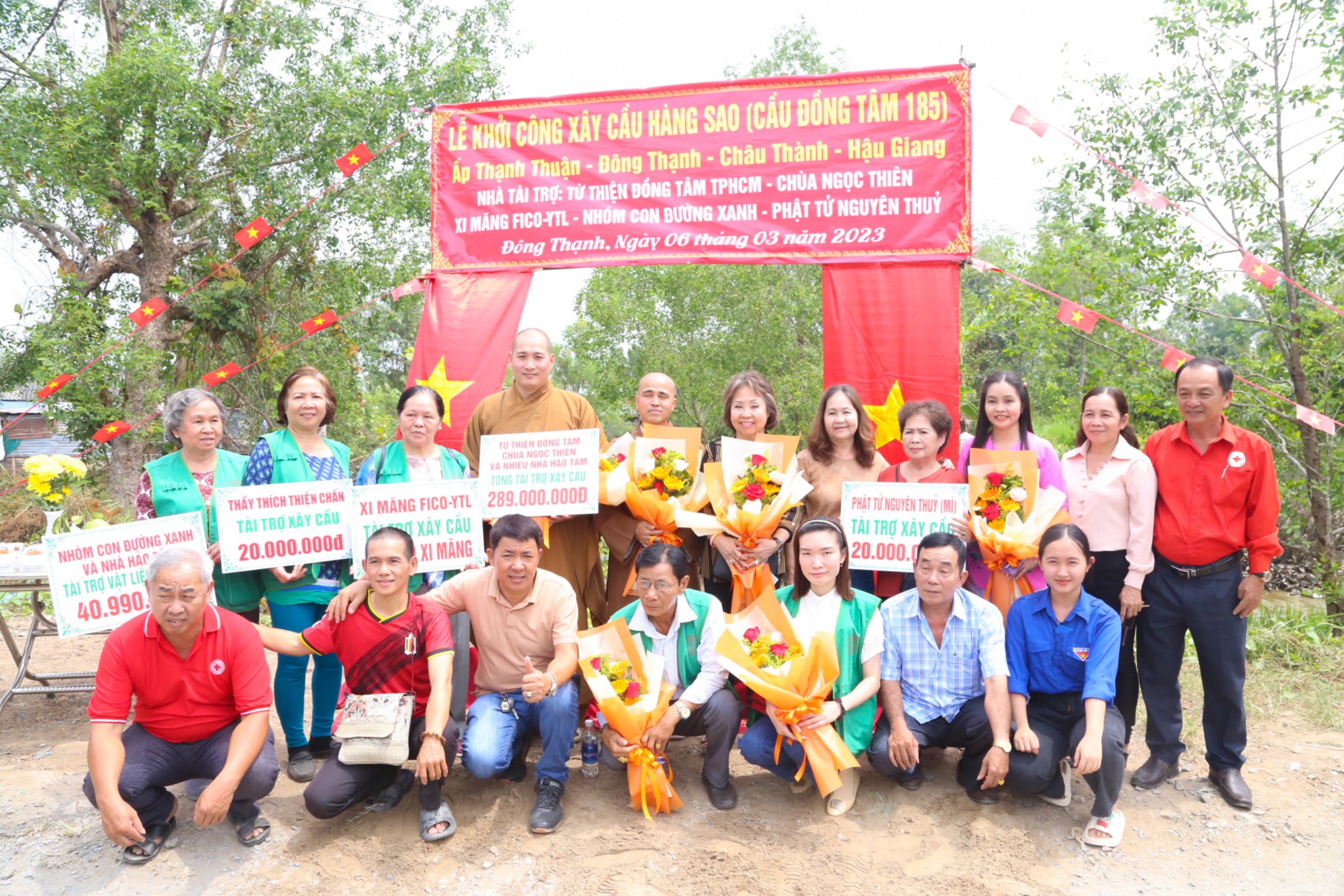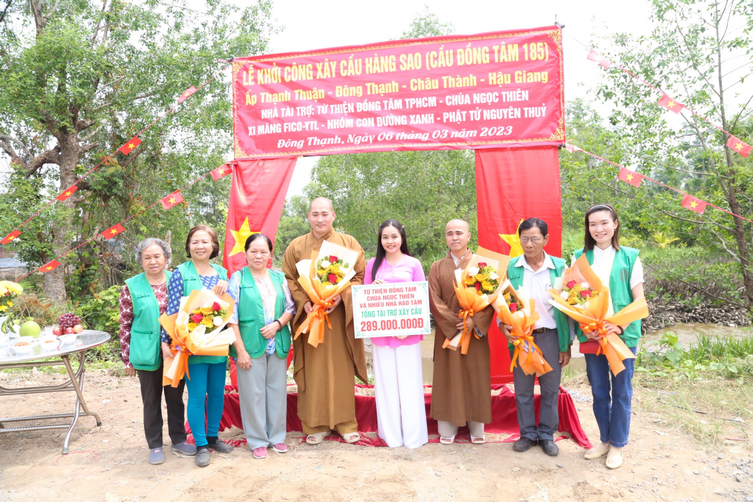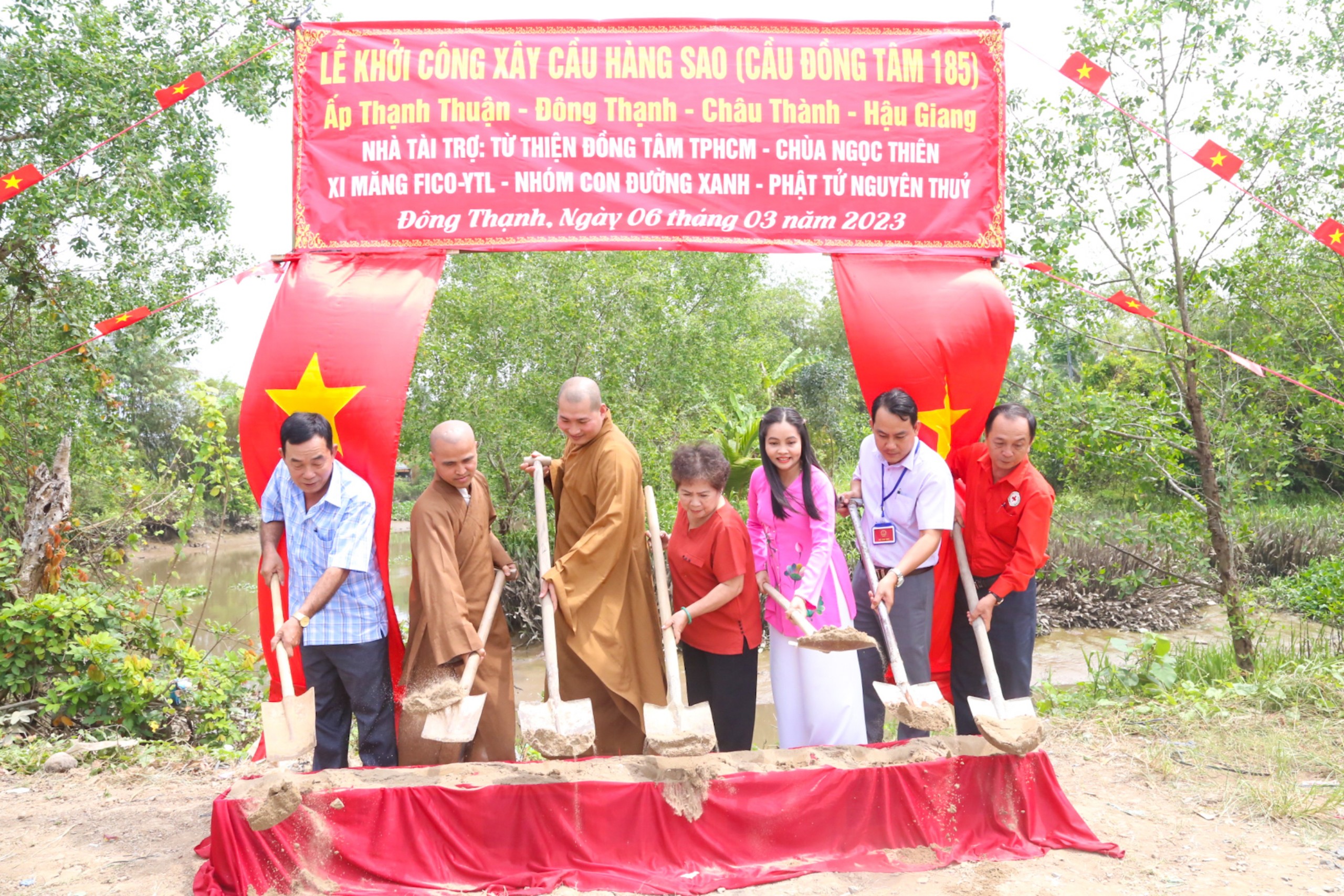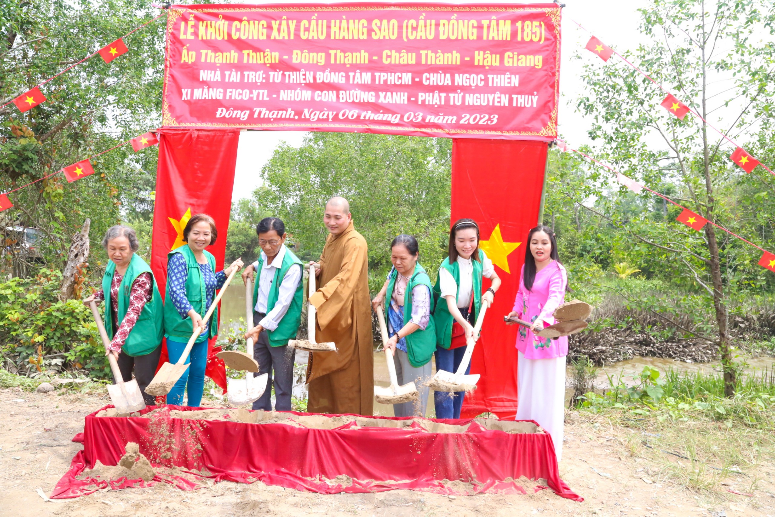 PSO - Sáng ngày 6/3/2023 (nhằm 15/2 Quý Mão), tại ấp Thạnh Thuận (xã Đông Thạnh, huyện Châu Thành, tỉnh Hậu Giang) chùa Ngọc Thiên phối hợp cùng Hội tử thiện Đồng Tâm (TP. HCM) và chính quyền địa phương tổ chức lễ khởi công xây dựng cầu Đồng Tâm 185. Tham dự lễ khởi công có ĐĐ. Thích Phước Thuận – Trưởng ban TT-XH GHPGVN huyện Châu Thành, Trụ trì chùa Ngọc Thiên; ĐĐ. Thích Thiện Chấn – Tăng chúng Viện Chuyên Tu Đồng Nai; bà Nguyễn Ngọc Mai – Chủ nhiệm Hội từ thiện Đồng Tâm cùng lãnh đạo đại diện chính quyền địa phương đồng tham dự.