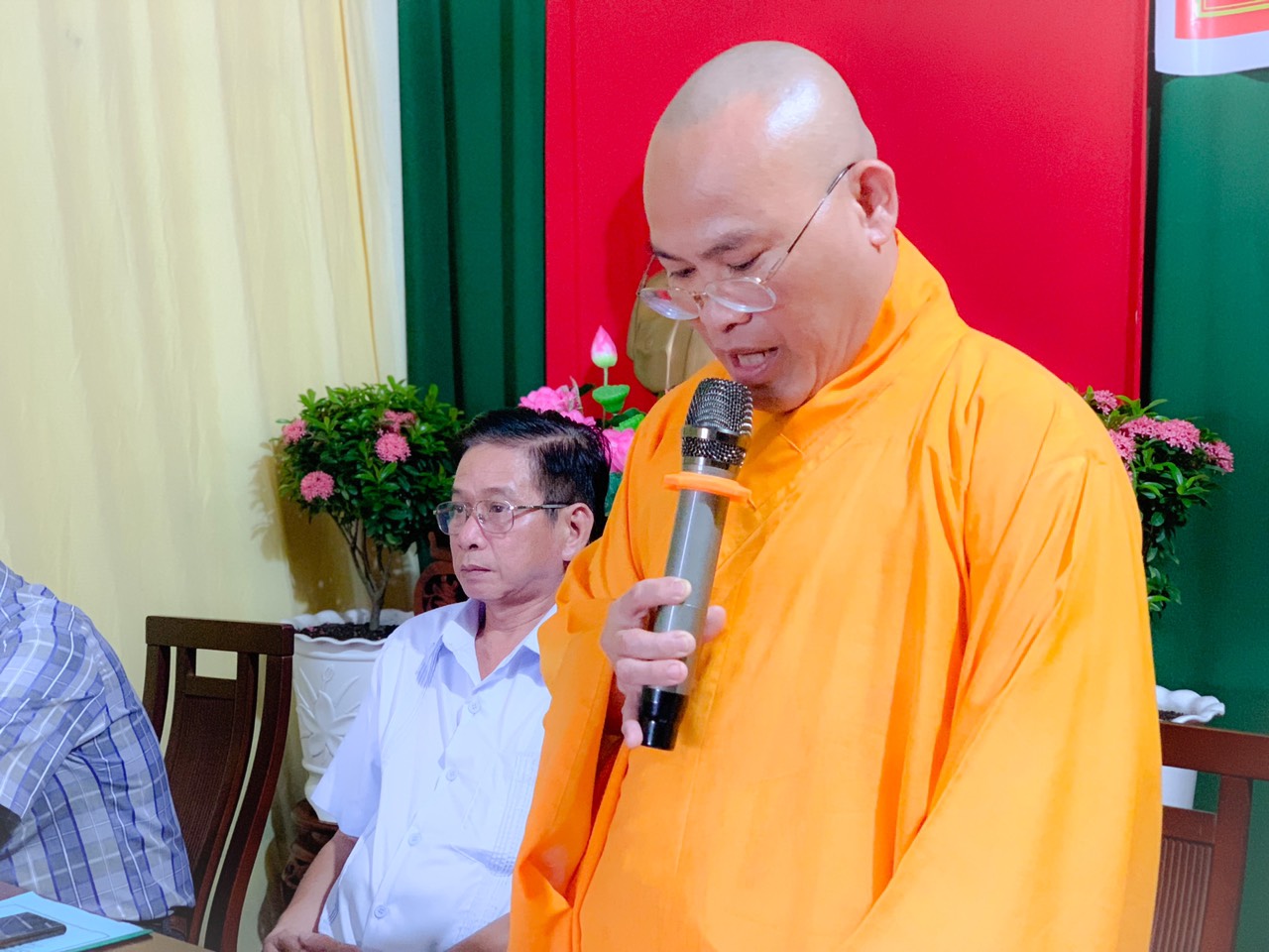 Phát biểu chỉ đạo tại buổi lễ, ông Lê Văn Sơn tri ân những đóng góp của Đại đức trụ trì trong thời gian qua, ông mong muốn thời gia tới nhà chùa cần phối hợp chặt chẻ hơn nữa với chính quyền địa phương để tuyên truyền, vận động chức sắc, chức việc, nhà tu hành và tín đồ tôn giáo tích cực tham gia các phong trào thi đua của địa phương; toàn dân chung tay giữ gìn môi trường xanh - sạch - đẹp; xây dựng nếp sống văn minh, thân thiện với môi trường; thay đổi thói quen không sử dụng túi nilon, đồ nhựa dùng một lần; khuyến khích sử dụng các sản phẩm dễ phân hủy, có thể tái sử dụng gắn với phân loại và xử lý rác thải tại gia đình. Thực hiện tốt công tác bảo vệ môi trường và ứng phó với biến đổi khí hậu. Góp phần thực hiện có hiệu quả cuộc vận động “Toàn dân đoàn kết xây dựng nông thôn mới, đô thị văn minh trên địa bàn xã”.