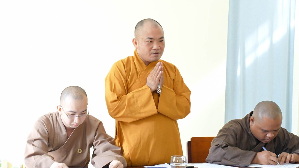 Thay mặt cho Ban Thư ký, TT. Thích Phước Dũng báo cáo công tác Phật sự tháng 4. Theo đó, trong tháng qua, BTS PG tỉnh xác nhận và giới thiệu 2 hồ sơ thọ giới; Phân ban Ni giới tỉnh cử đoàn tham dự Đại lễ Tưởng niệm Đức Thánh Tổ Ni Đại Ái Đạo và chư Tôn đức Ni tiền bối hữu công Phật giáo Việt Nam tại thủ đô Hà Nội. Ban Hướng dẫn Phật tử tỉnh tổ chức khoá tu “Trở về bên Phật” hướng về Vesak thiêng liêng; các tự viện trong tỉnh tổ chức các khóa tu, sinh hoạt theo định kỳ. Các công tác từ thiện xã hội luôn được và thực hiện với nhiều hình thức như: phát cơm từ thiện, phát gạo, tặng quà cho bà con có hoàn cảnh khó khăn.