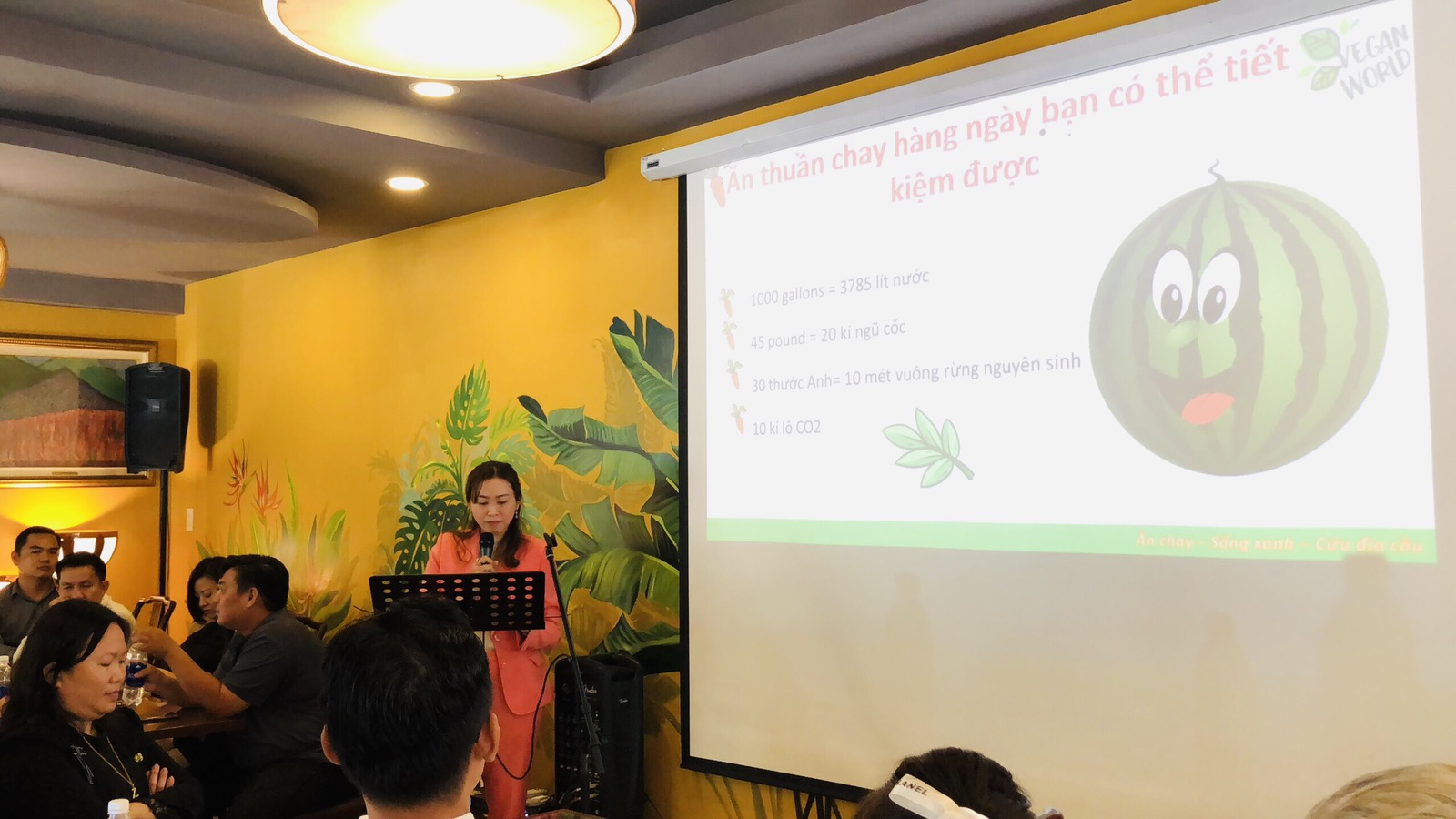 Bà Nguyễn Thị Thúy Duy - Phó Giám đốc Công ty TNHH Thế giới Vegan đã có những chia sẻ về lối sống thuần chayĐặc biệt kết thúc buổi Lễ, Đại biểu tham dự được thưởng thức buổi tiệc thuần chay giúp bảo vệ khí hậu và môi trường trong bối cảnh dịch Covid-19 đang lan rộng trên thế giới; biến đổi khí hậu làm nước biển dâng, xâm nhập mặn, sạt lở.