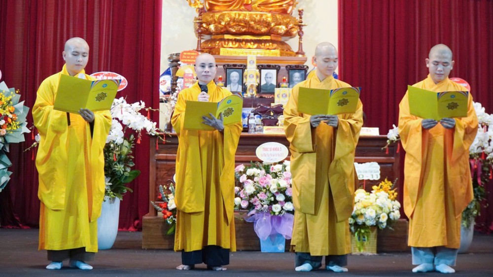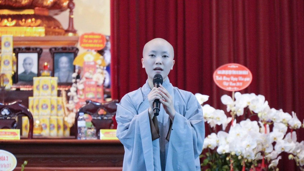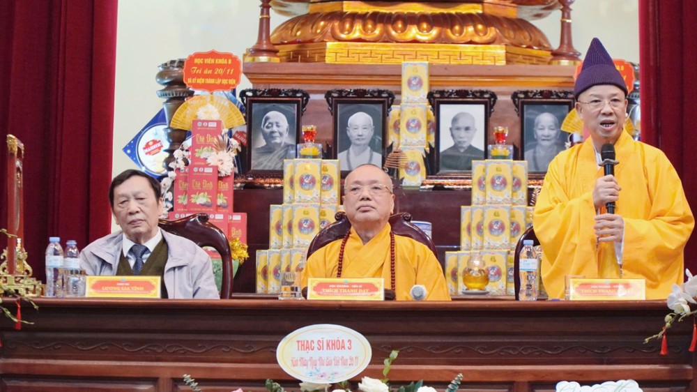 Hoà thượng Viện trưởng Học viện đã có lời đạo từ, sách tiến Tăng Ni sinh nêu cao tinh thần trách nhiệm, “người đi trước rước người đi sau” để nỗ lực đi lên trong tu học. Hoà thượng cũng khen ngợi tinh thần tự giác, tự quản của Tăng Ni sinh khuyến khích Tăng Ni sinh cố gắng học tập, nghiên cứu, phát triển sở học làm tư lương cho bản thân trên bước đường tu học.