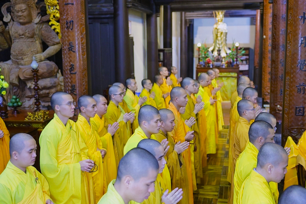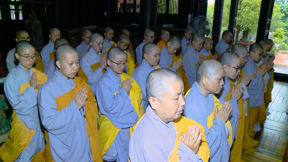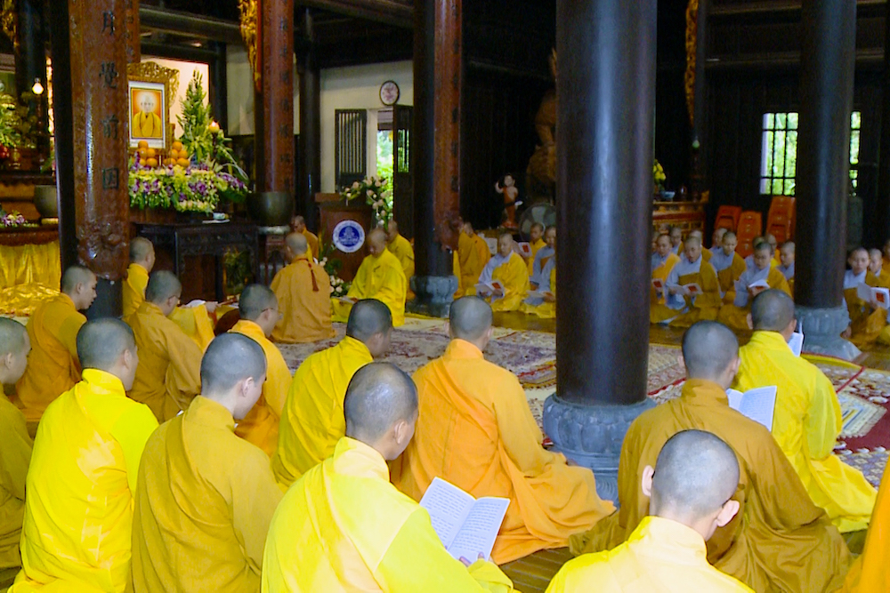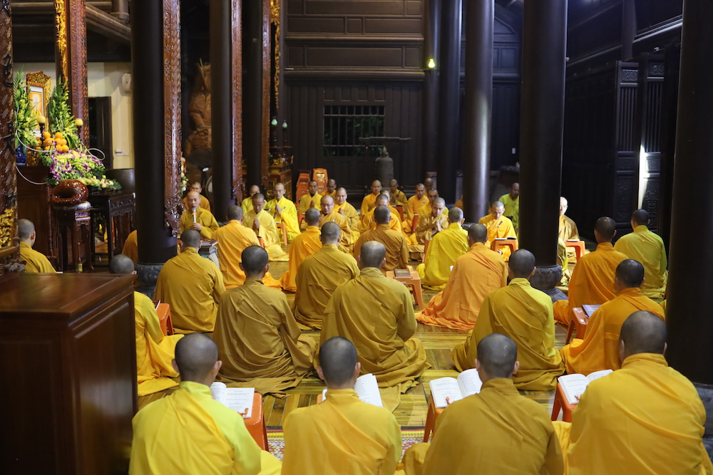 Sau lễ Tưởng niệm là thời khoá tụng kinh Di Giáo do TT. Thích Nguyên Thành - UV HĐTS, Phó Viện trưởng Học viện cùng chư Tôn đức Hội đồng Điều hành, quý Tăng Ni sinh viên trì tụng.