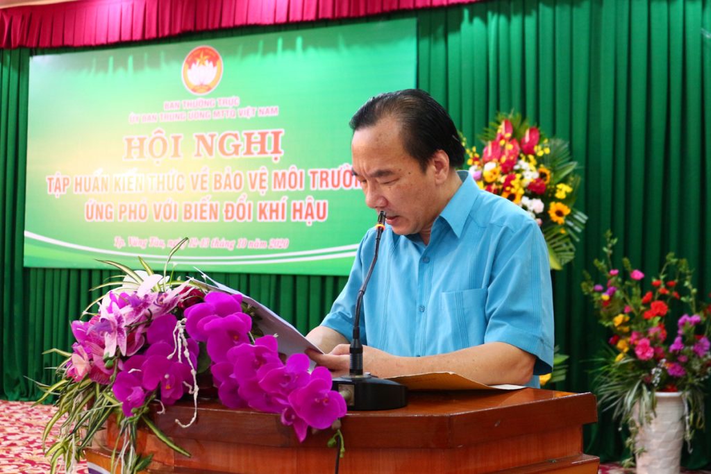 Tại đây, ông Phạm Văn Tấn chia sẻ: Việt Nam là một trong những quốc gia chịu ảnh hưởng nặng nề của BĐKH. Trong đó đồng bằng Sông Cửu Long là một trong ba đồng bằng phải chịu ảnh hưởng nặng nề nhất. Nhận thức được hiện trạng đó, nhiều năm qua Việt Nam đã chủ động, tích cực cùng cộng đồng quốc tế ứng phó với BĐKH. Hội nghị tập huấn lần này nhằm cập nhật, trao đổi, thảo luận về các kiến thức, kỹ năng ứng phó với BĐKH, giảm nhẹ hiệu ứng nhà kính, vai trò của các tôn giáo trong việc Bảo vệ môi trường và ứng phó với BĐKH góp phần thay đổi nhận thức, hành vi, thói quen của cộng đồng vì sự phát triển bền vững của đất nước.