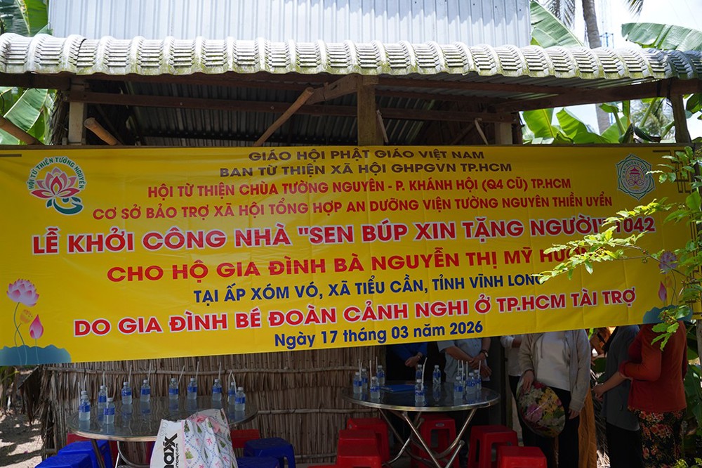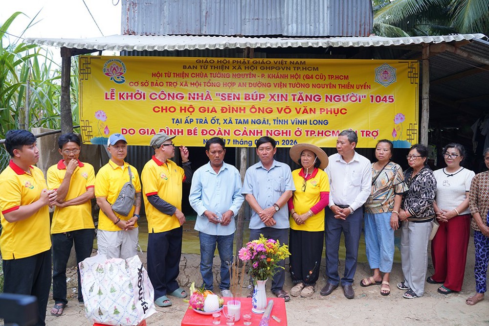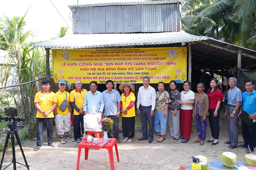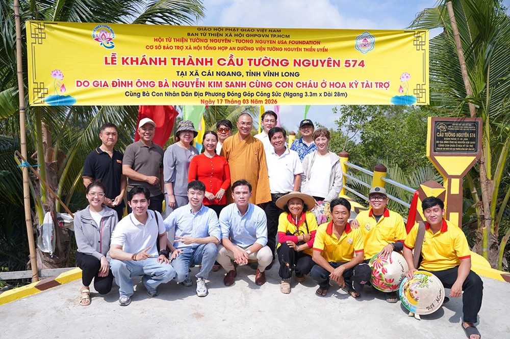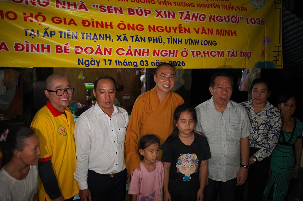 PSO – Ngày 17/03/2026 (nhằm ngày 29 tháng Giêng năm Bính Ngọ), Hội Từ thiện chùa Tường Nguyên do Thượng tọa Thích Minh Phú – Ủy viên Hội đồng Trị sự, Phó Trưởng Ban Thường trực Ban Từ thiện xã hội GHPGVN TP.HCM làm trưởng đoàn, đã tổ chức lễ khánh thành cầu giao thông nông thôn và khởi công xây dựng các căn nhà tình thương “Sen Búp Xin Tặng Người” tại tỉnh Vĩnh Long.